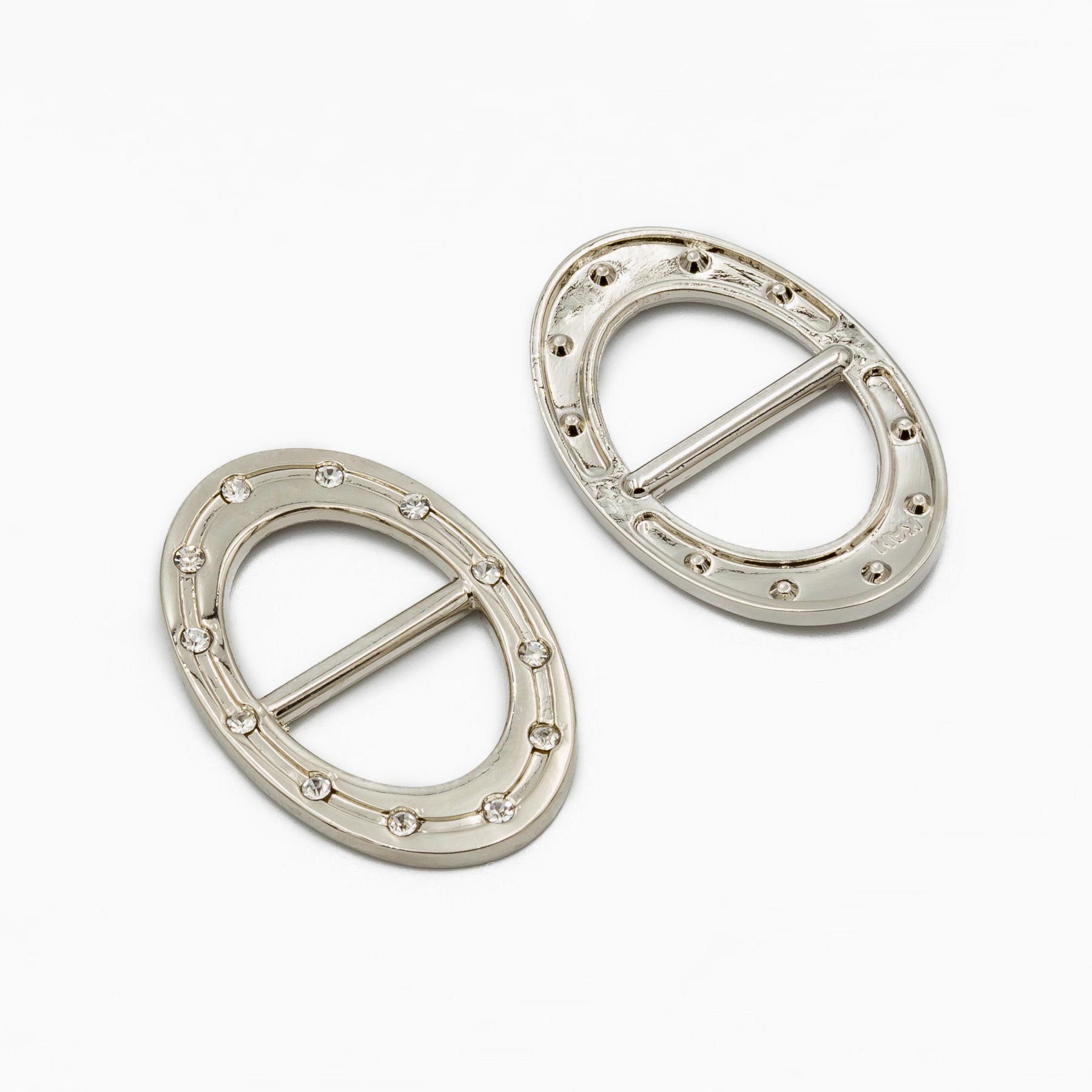 Non-Pin Buckle, Alloy material, 14.5mm, With Rhinestone, Nickel color.