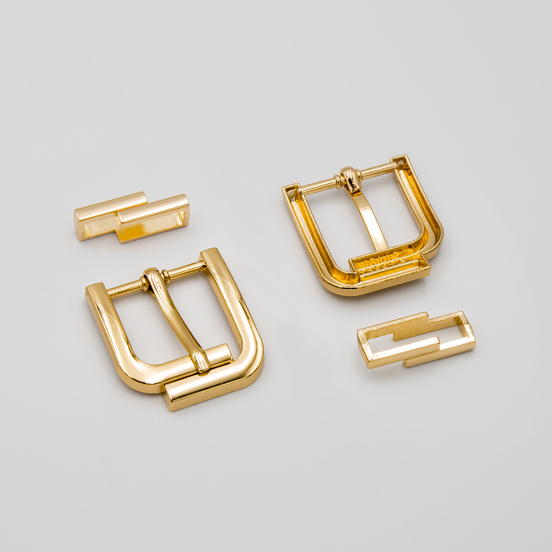 Pin Buckle, Alloy material, 18mm, Plain, Brass color.