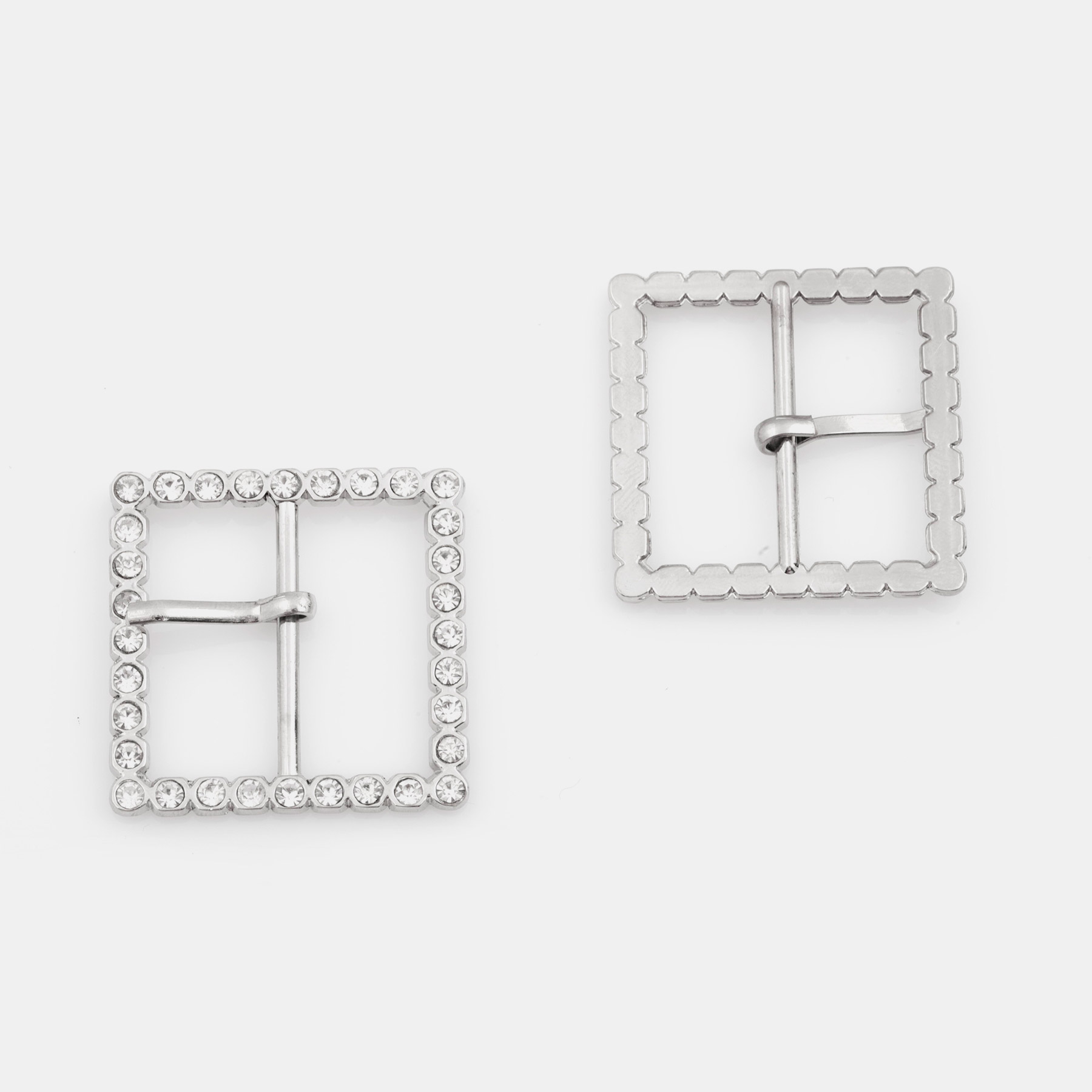 Pin Buckle, Alloy material, 32mm, With Rhinestone, Nickel color.