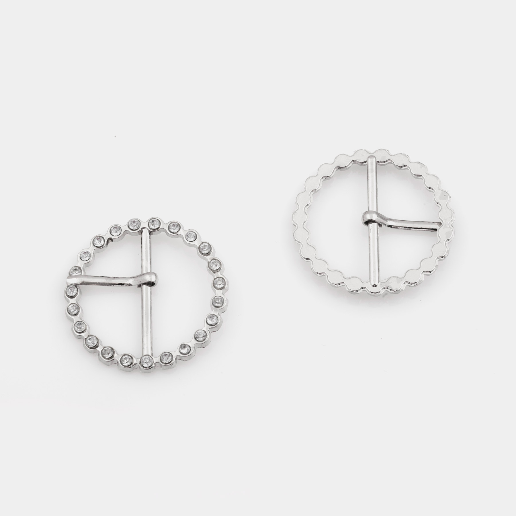 Pin Buckle, Alloy material, 32mm, With Rhinestone, Nickel color.