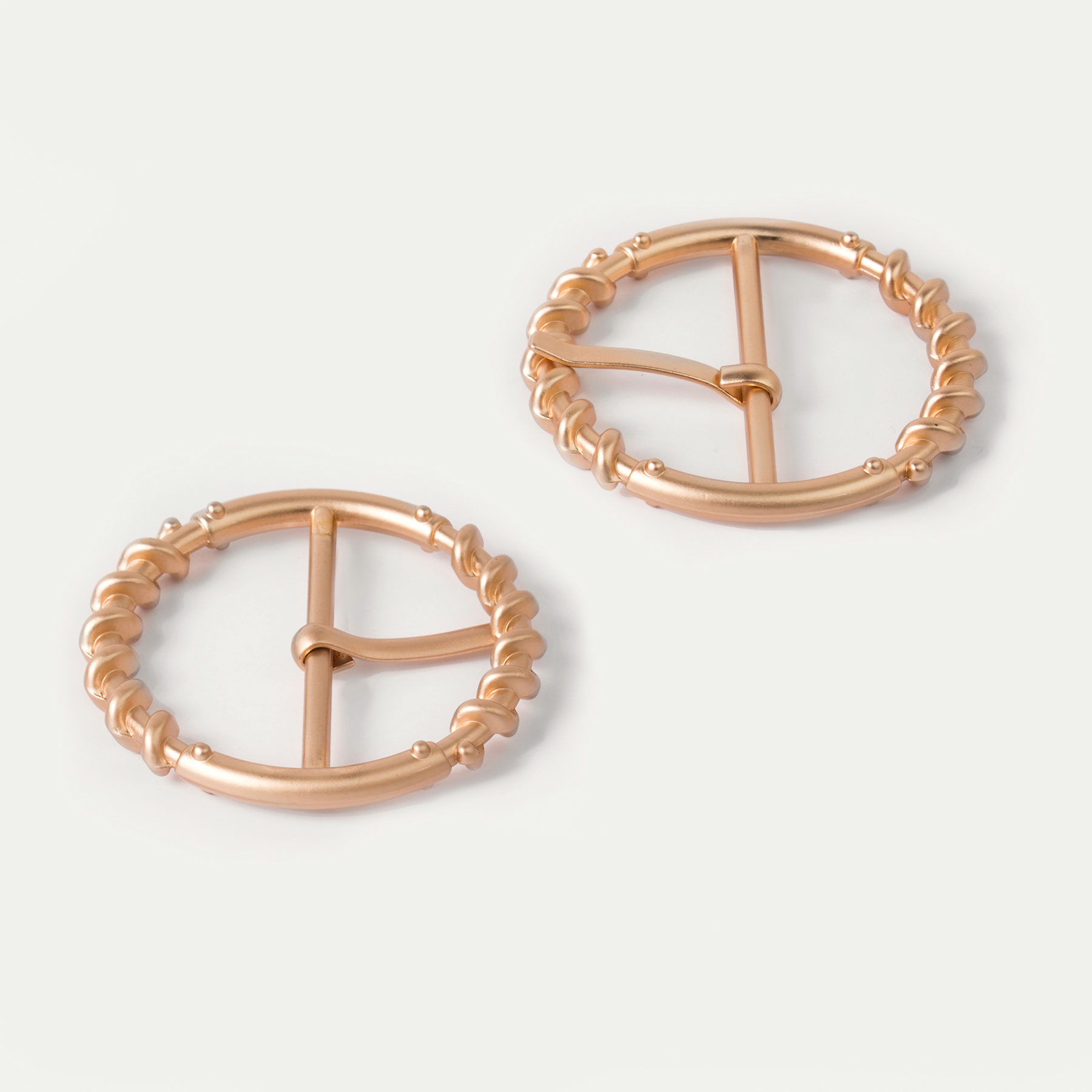 Pin Buckle, Brass material, 34mm, With Design, Dull Brass color.
