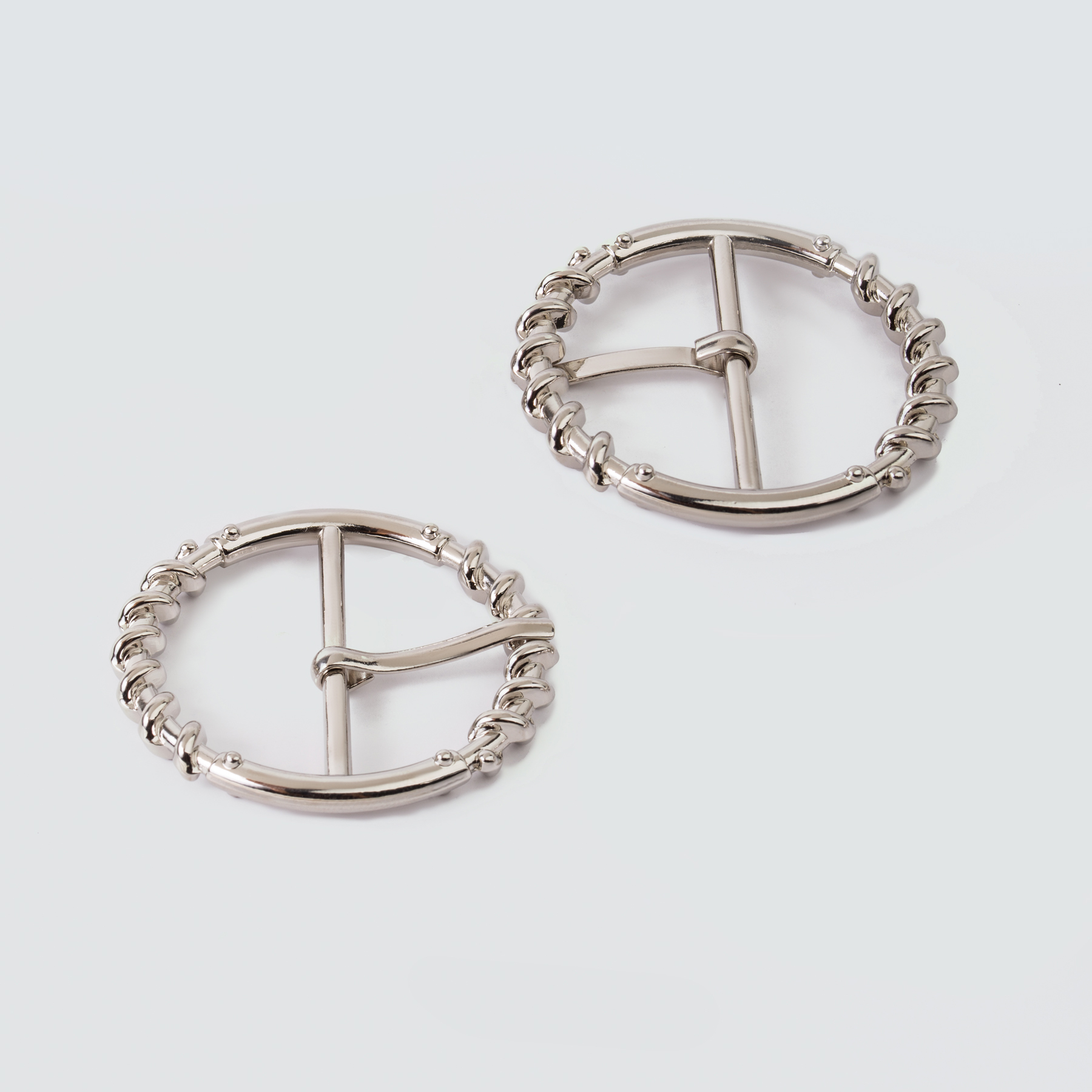 Pin Buckle, Brass material, 34mm, With Design, Nickel color.