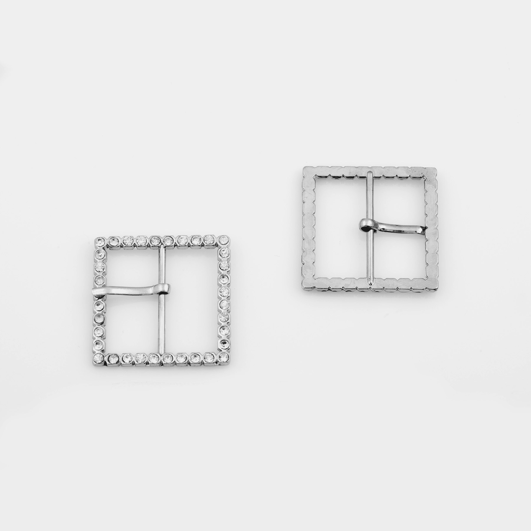 Pin Buckle, Alloy material, 36mm, With Rhinestone, Nickel color.
