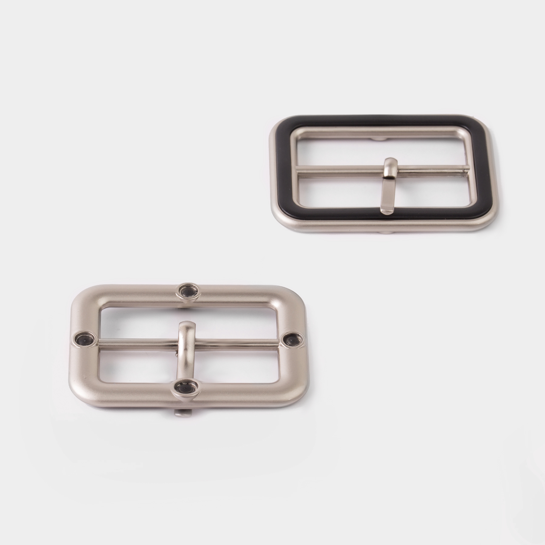 Pin Buckle, Brass material, 49mm, With Design, Dull Brass color.