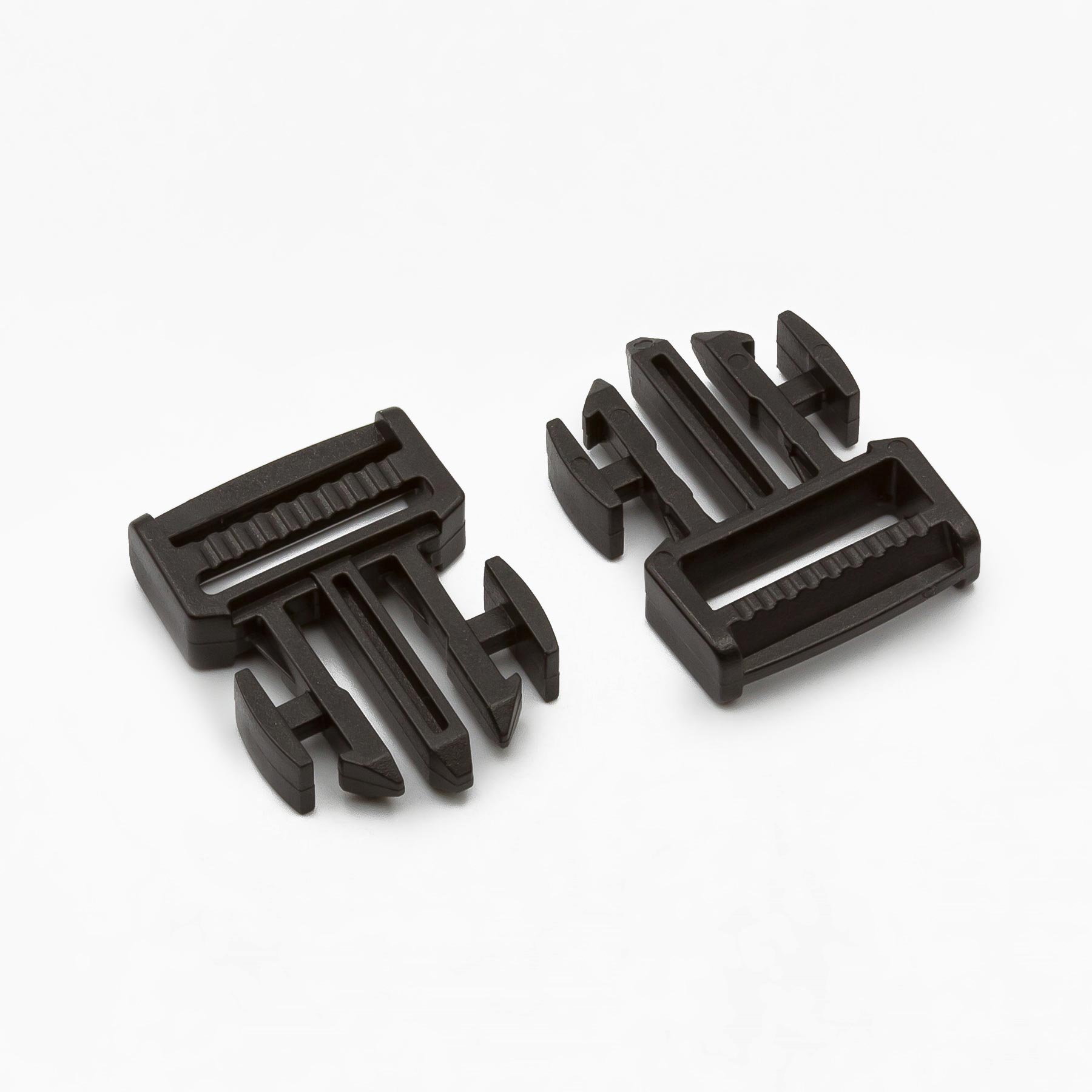 Release Buckle, Plastic material, 20mm, Plain, Black color.
