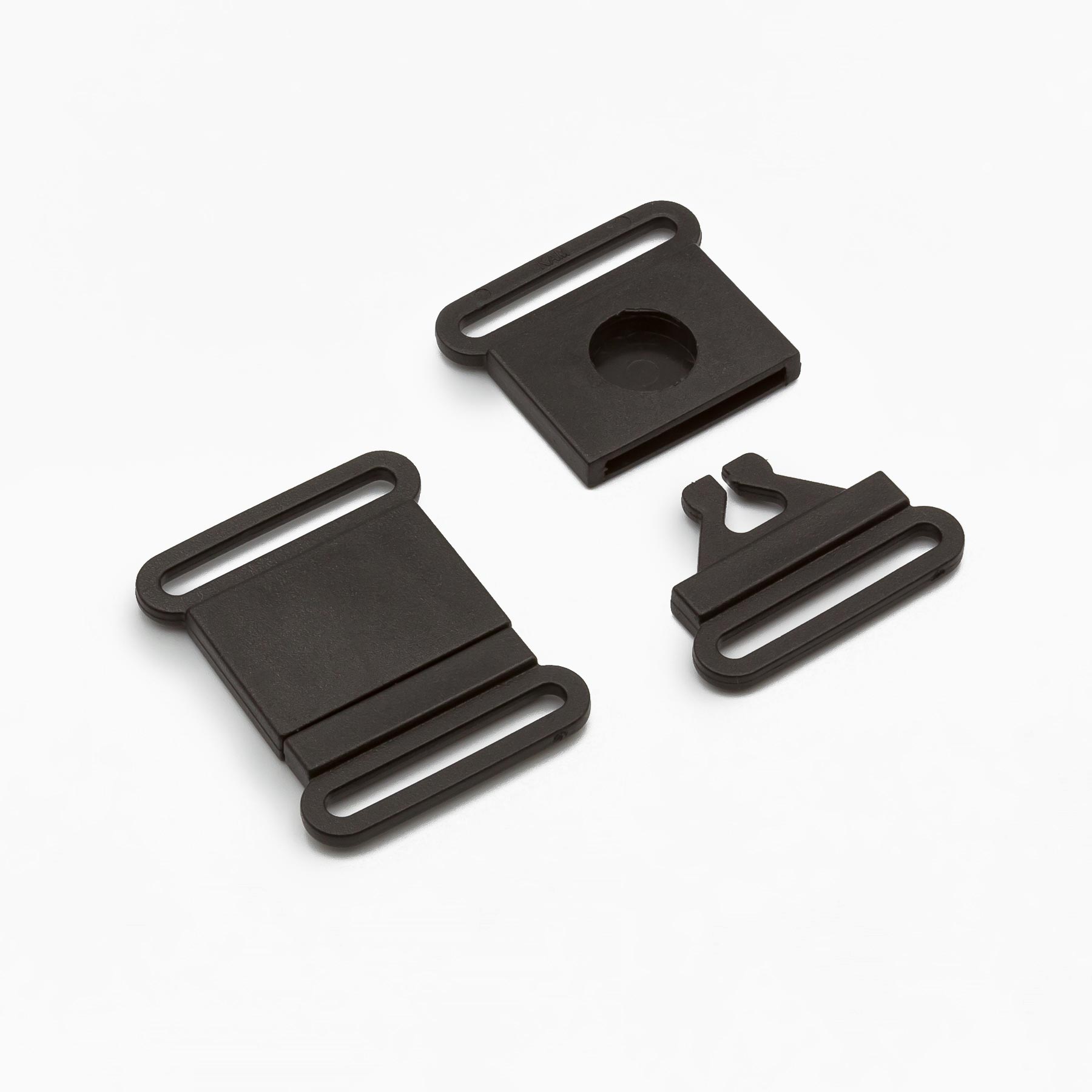 Release Buckle, Plastic material, 25mm, Plain, Black color.