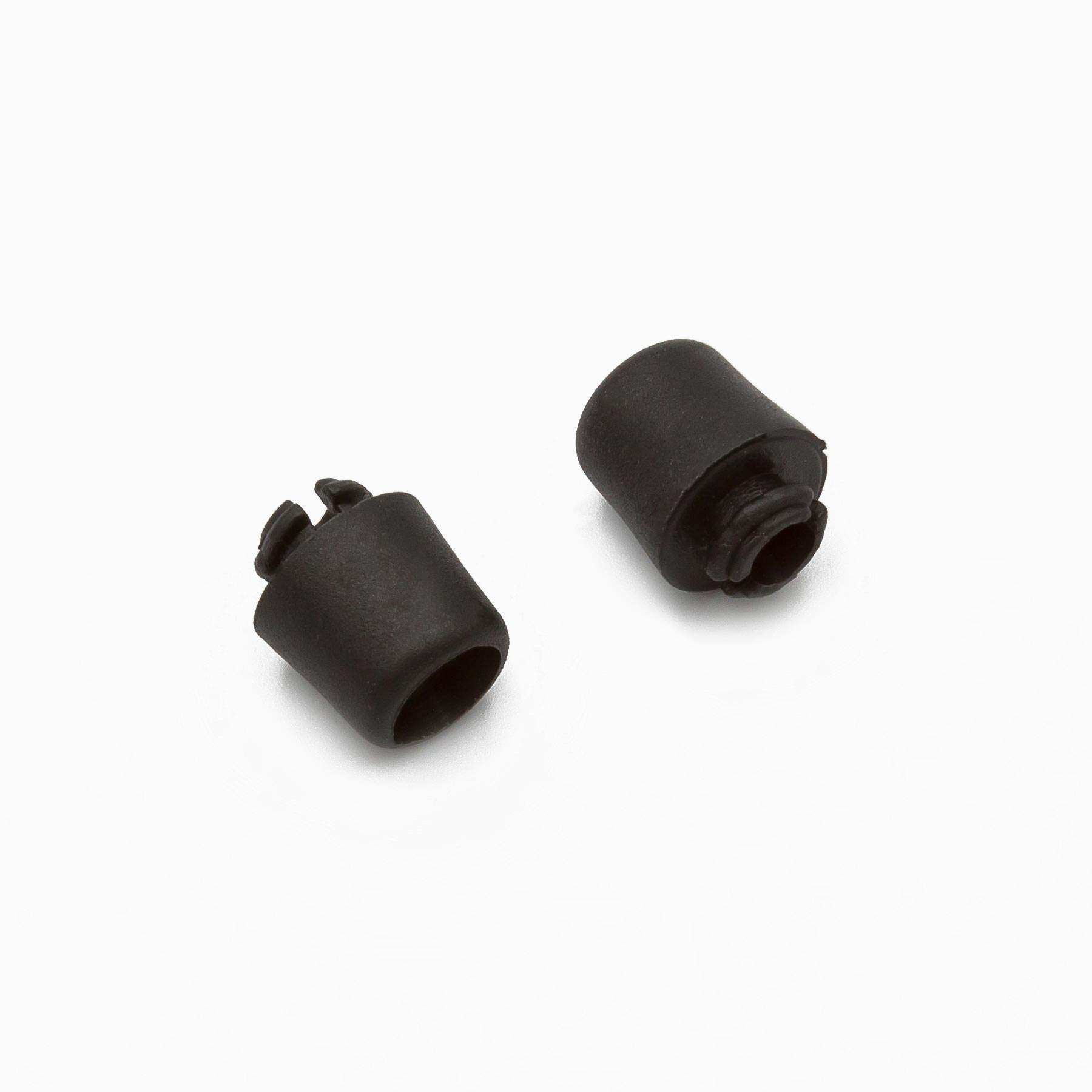 Cord End, Plastic material, 10.6 X 8.5mm, Black color. With hole 3mm.