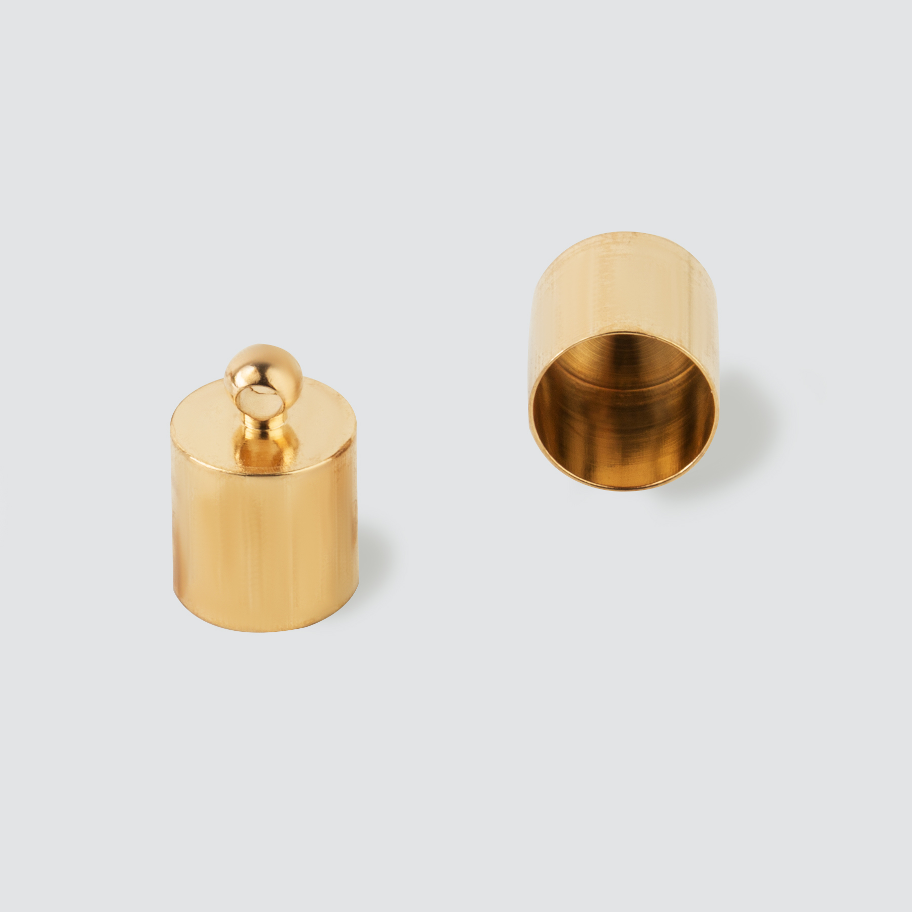 Cord End, Alloy material, 12mm, Brass color. With hole 8mm.