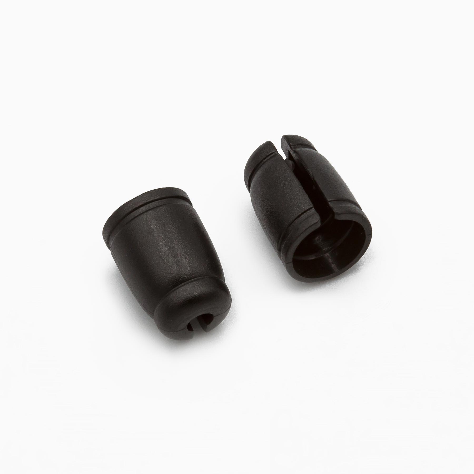 Cord End, Plastic material, 14.3 X 10mm, Black color. With hole 6mm.