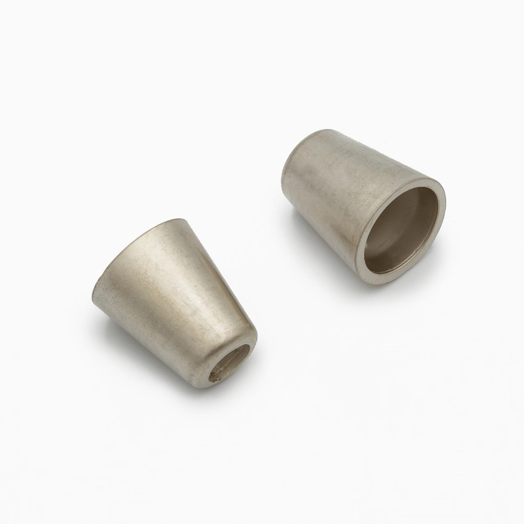 Cord End, Plastic material, 14.7 X 12mm, Dull Nickel color. With hole 4.5mm.