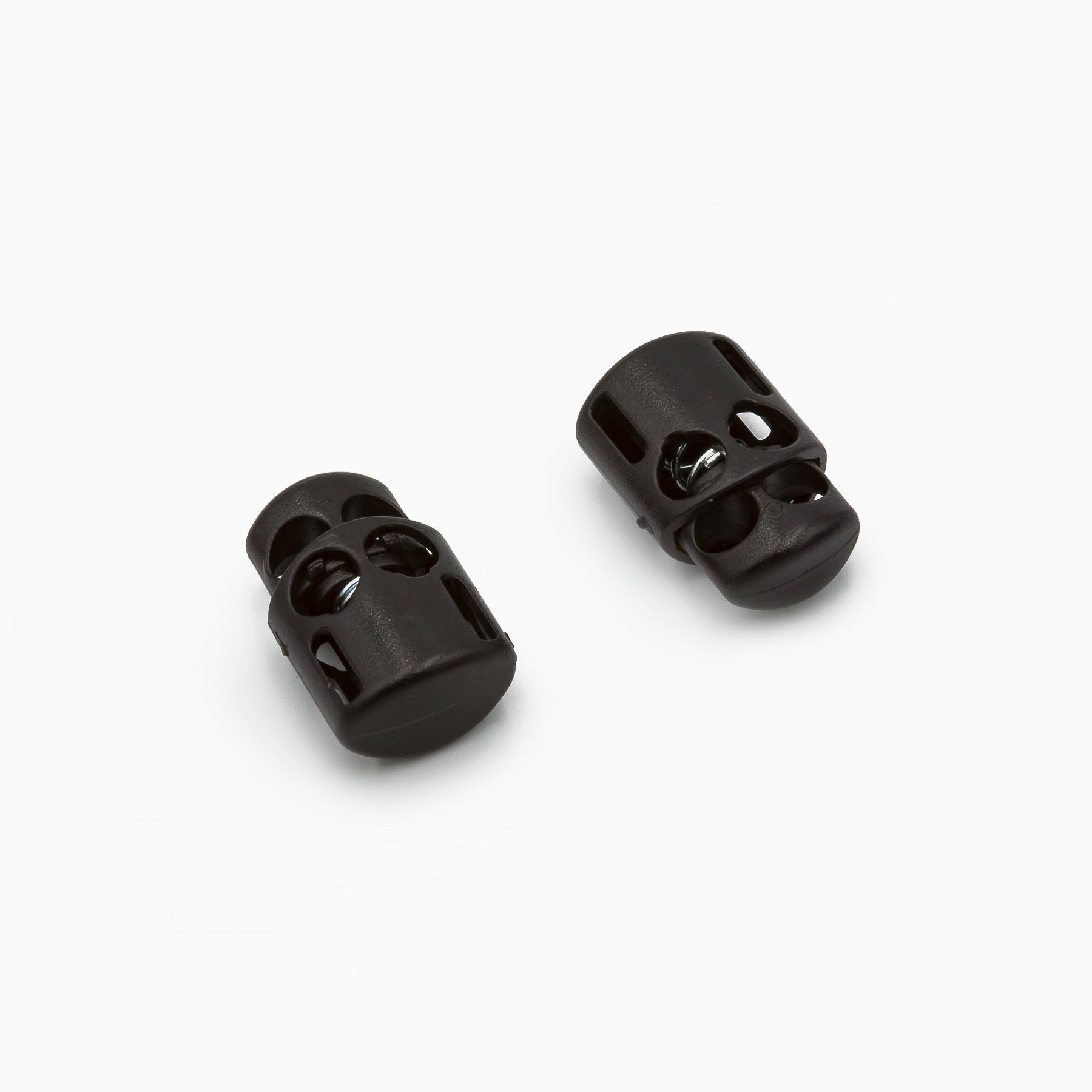Cord Stopper, Plastic material, 20 X 12.8mm, Black color. With hole 4mm.
