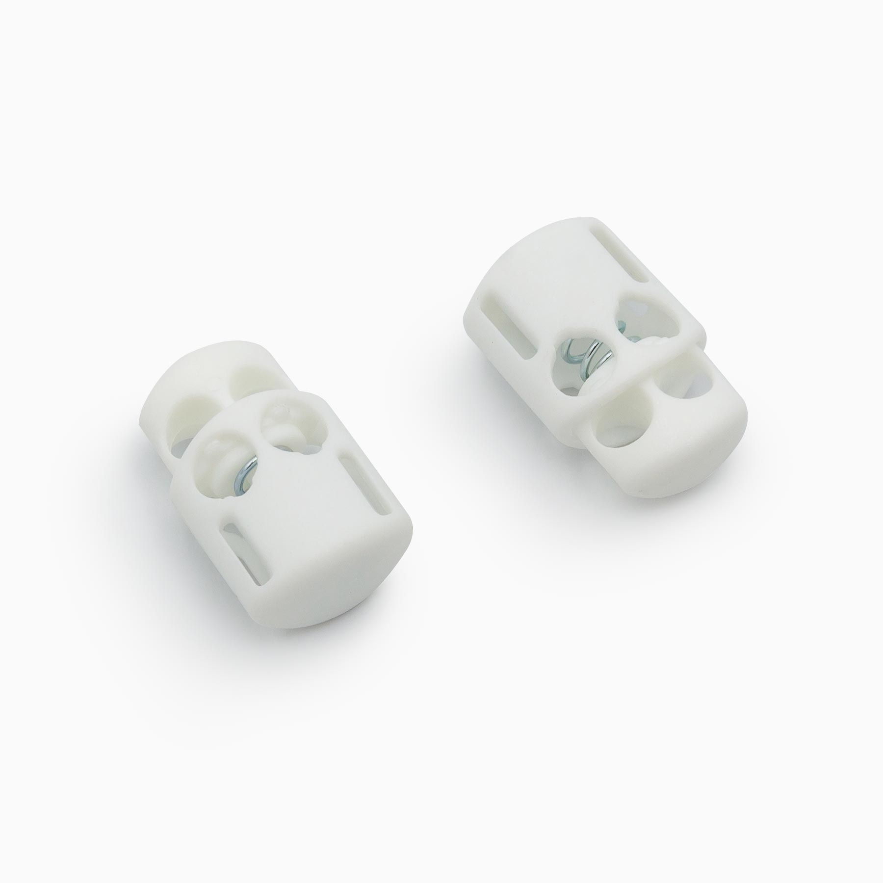 Cord Stopper, Plastic material, 20 X 12.8mm, White color. With hole 4mm.