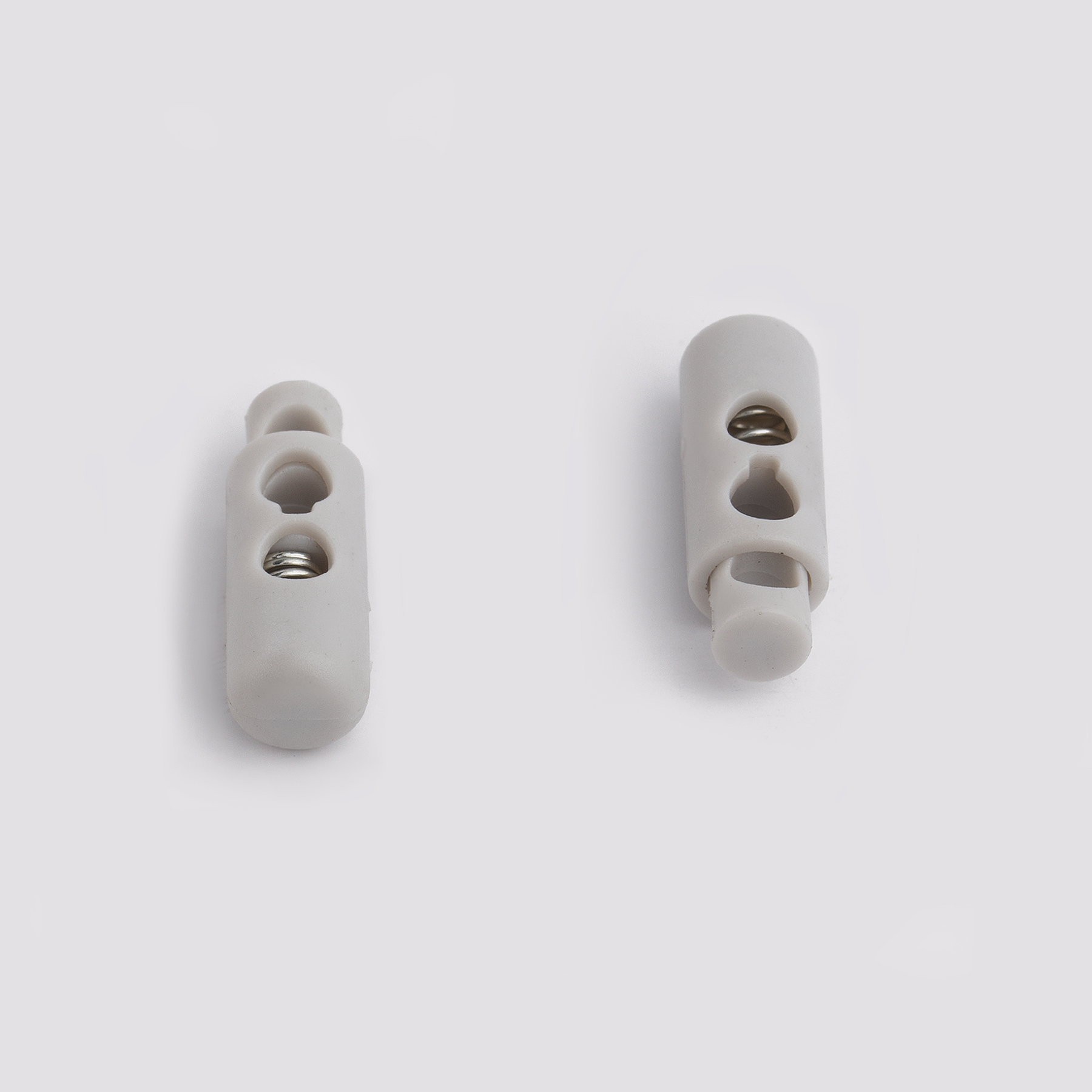 Cord Stopper, Plastic material, 24 X 8.3mm, Light Grey color. With hole 4mm.