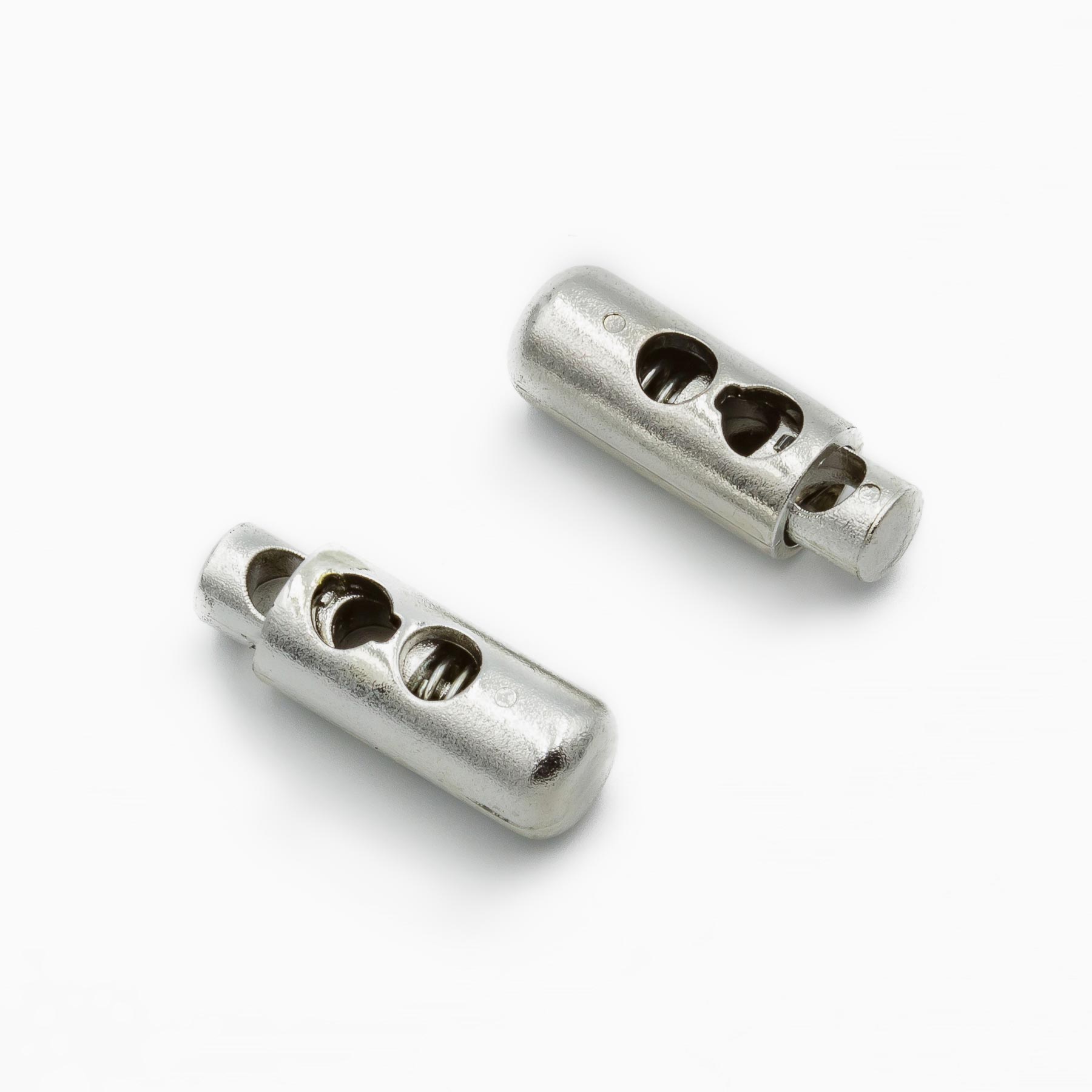 Cord Stopper, Plastic material, 24 X 8.3mm, Nickel color. With hole 4mm.