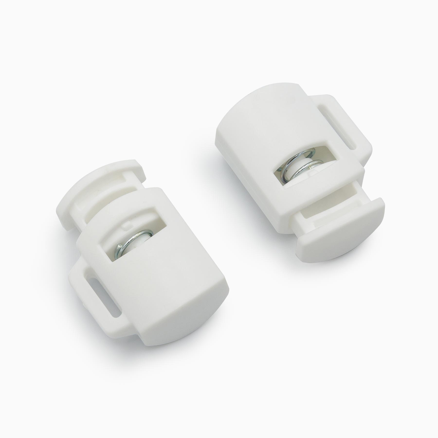 Cord Stopper, Plastic material, 27.5 X 20mm, White color. With hole 10mm.