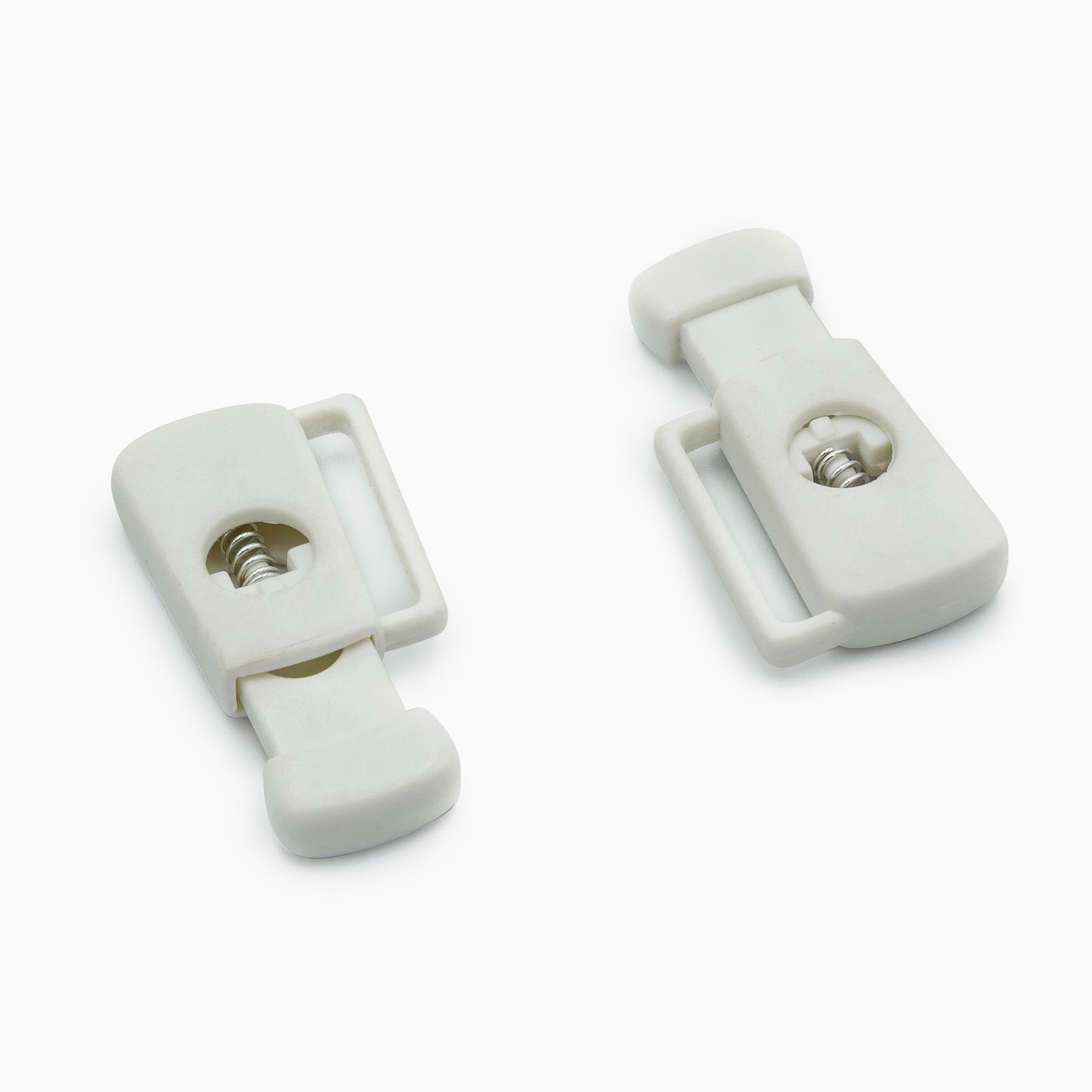 Cord Stopper, Plastic material, 30 X 15.5mm, White color. With hole 5.5mm.