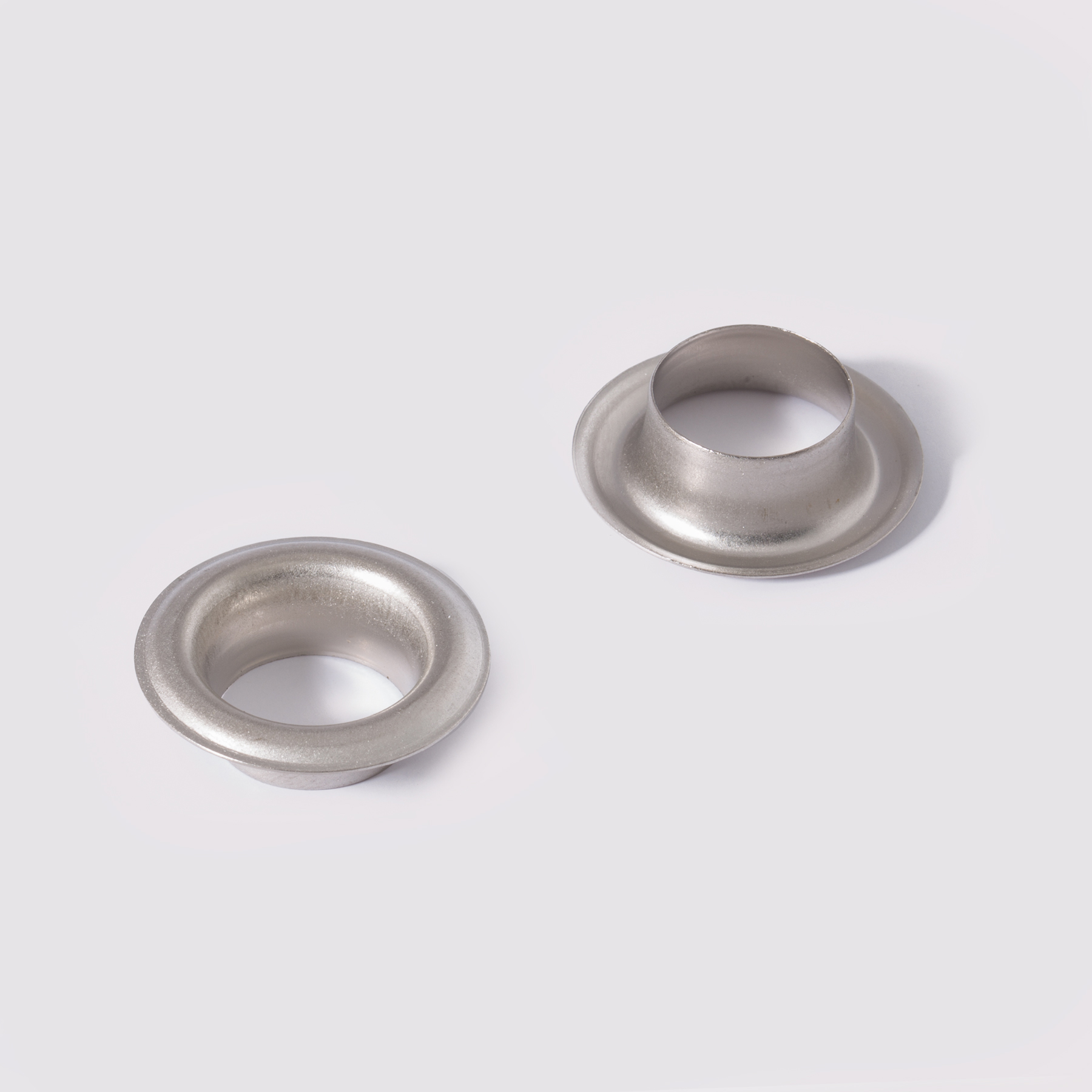 Eyelet (Part A'), Brass material, Round shape, 11.5mm inner size, Dull Nickel color.
