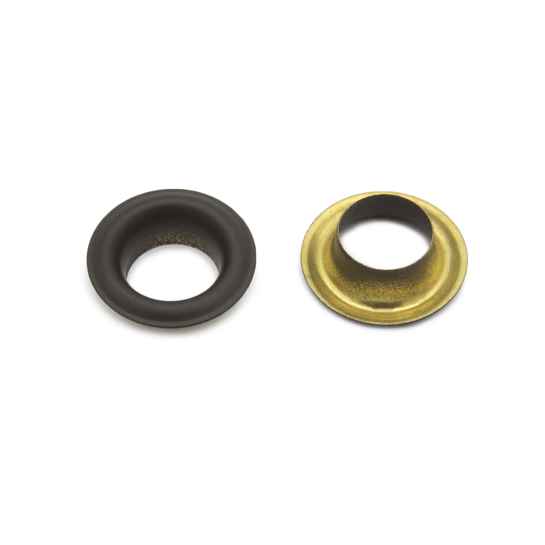 Eyelet (Part A'), Brass material, Round shape, 11mm inner size, Black color.