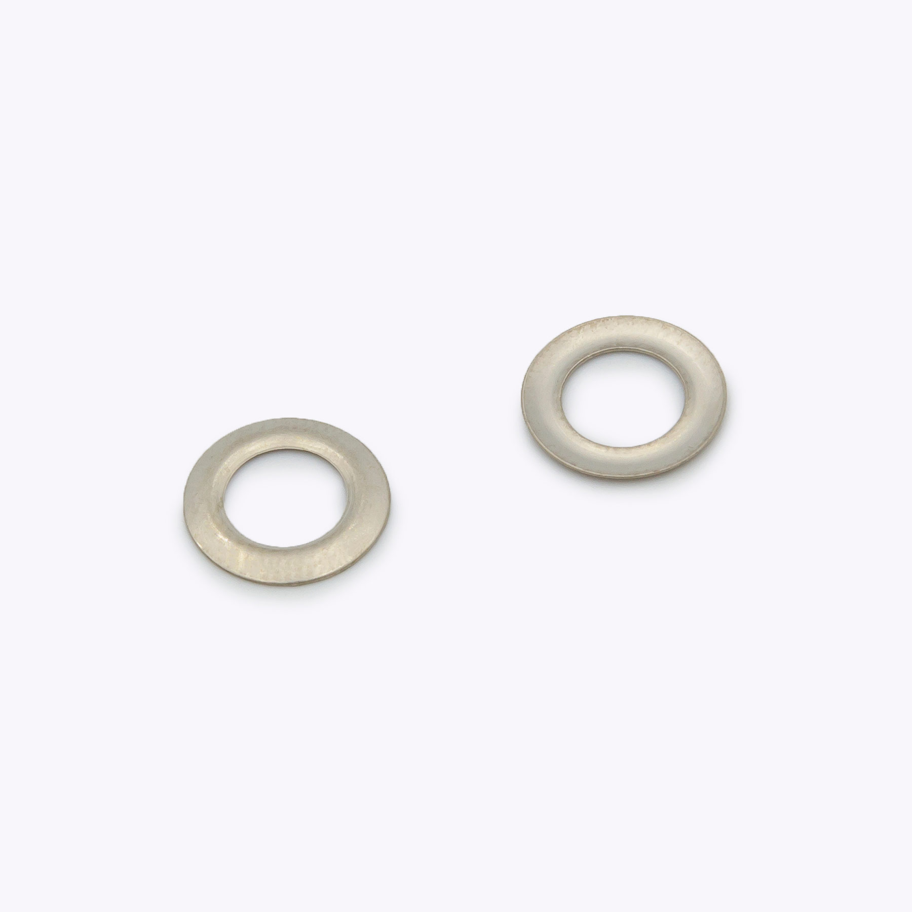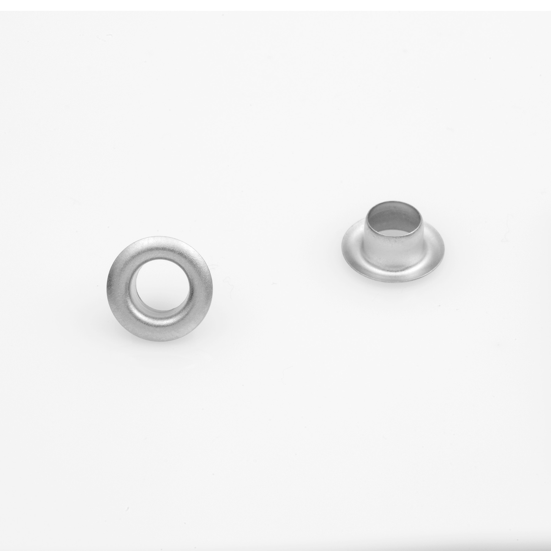 Eyelet (Part A'), Brass material, Round shape, 5mm inner size, Dull Nickel color.