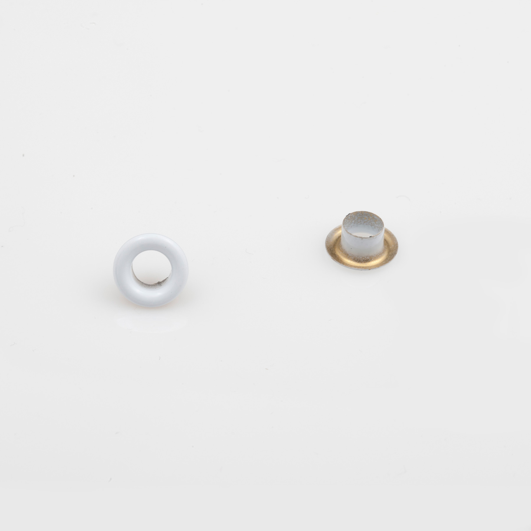 Eyelet (Part A'), Brass material, Round shape, 5mm inner size, White color.
