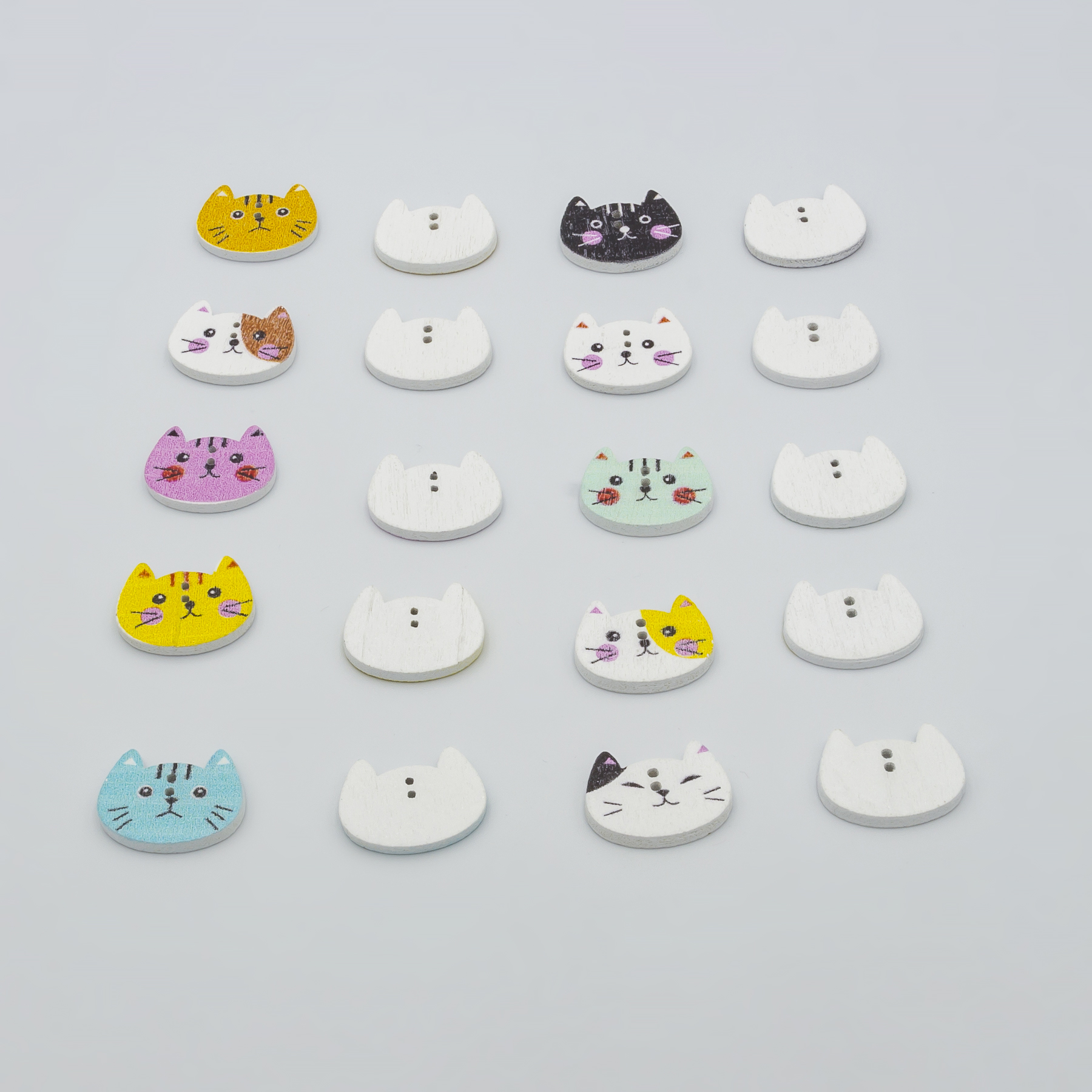 Cat, Wood material, Various Shape, 20 X 15mm, Mixed color.