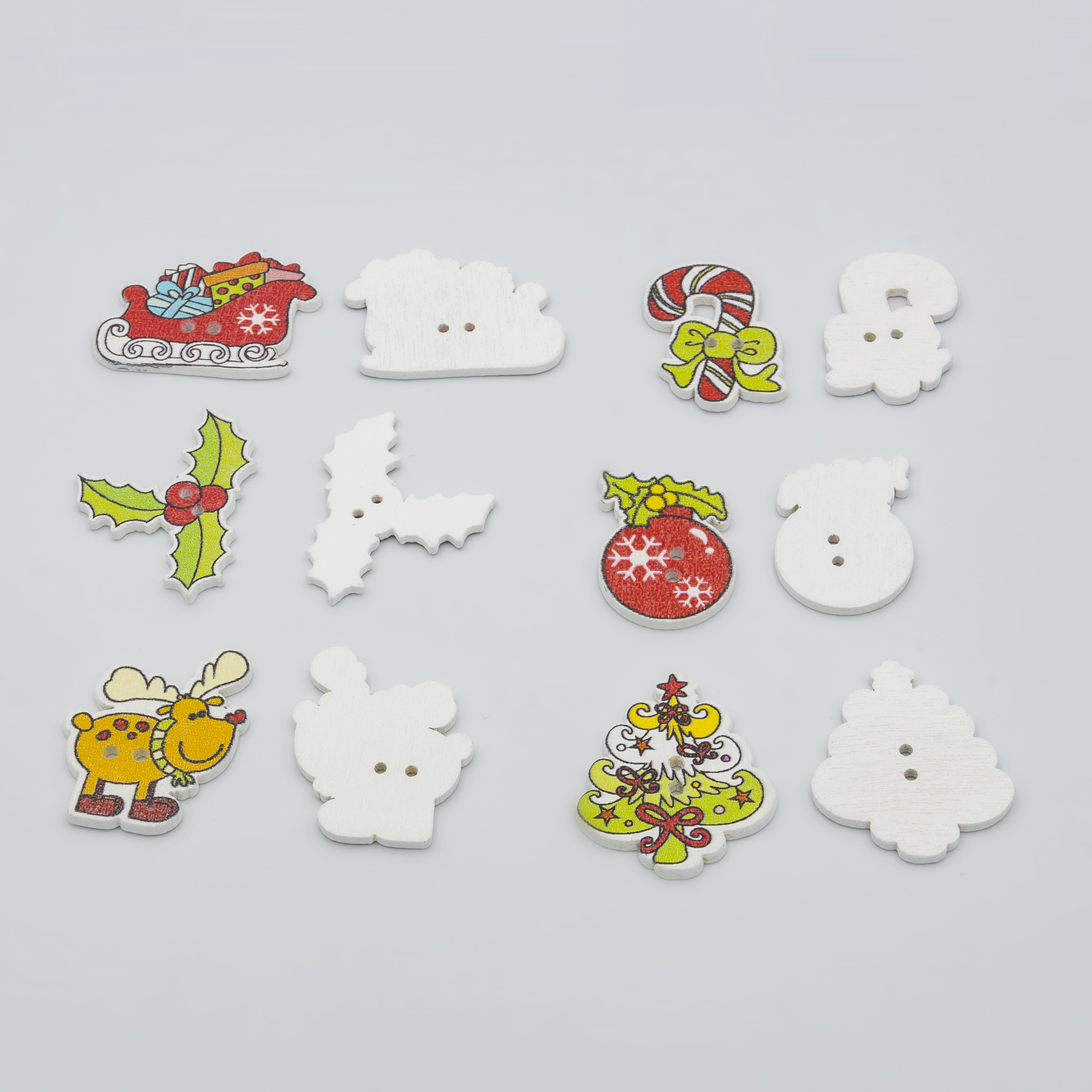 Christmas themes, Wood material, Various Shape, 28 X 22mm, Mixed color.