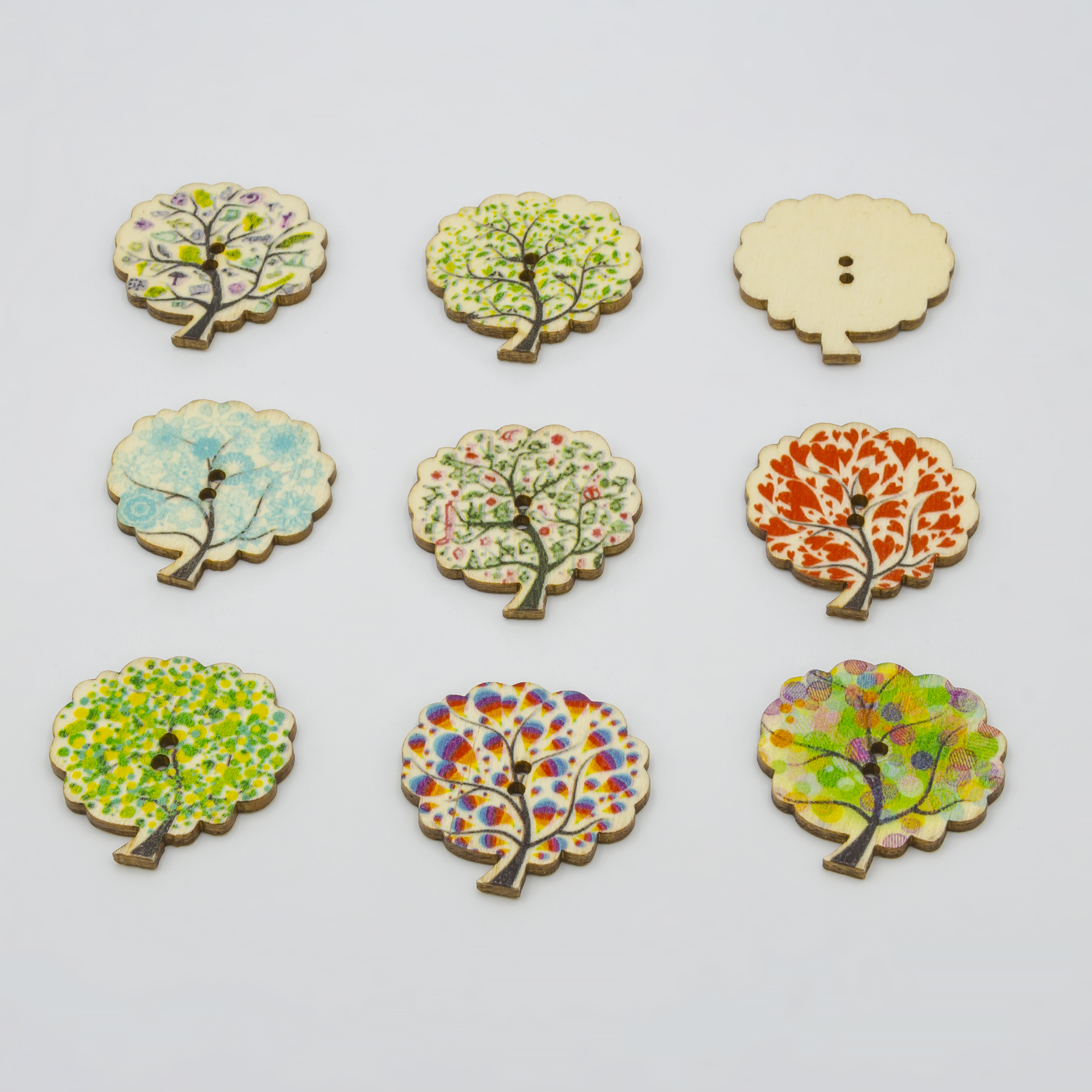 Tree, Wood material, Various Shape, 29 X 29mm, Mixed color.