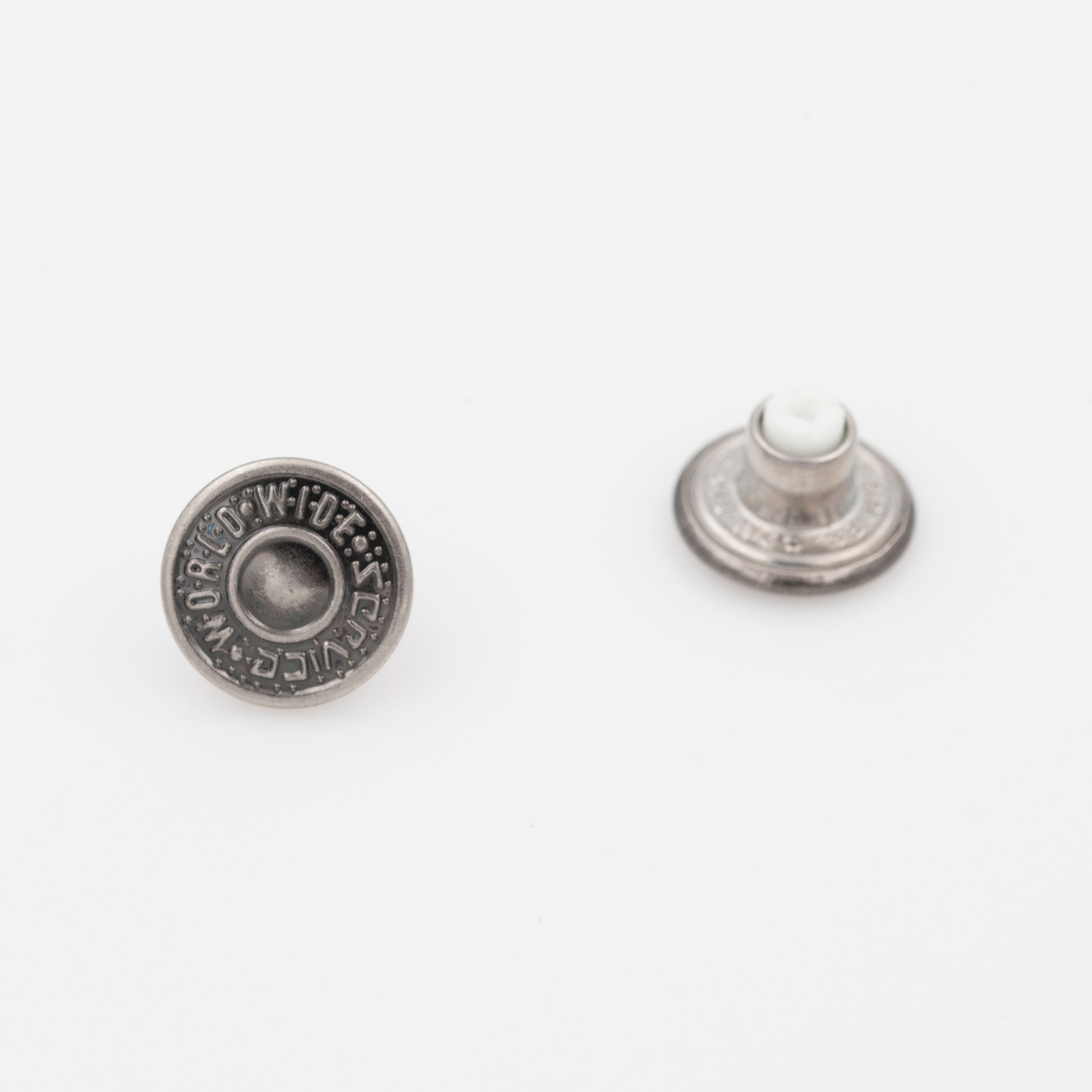 Fix Shank, Jeans Button, Brass material, 14mm, With Logo, Anti Nickel color.