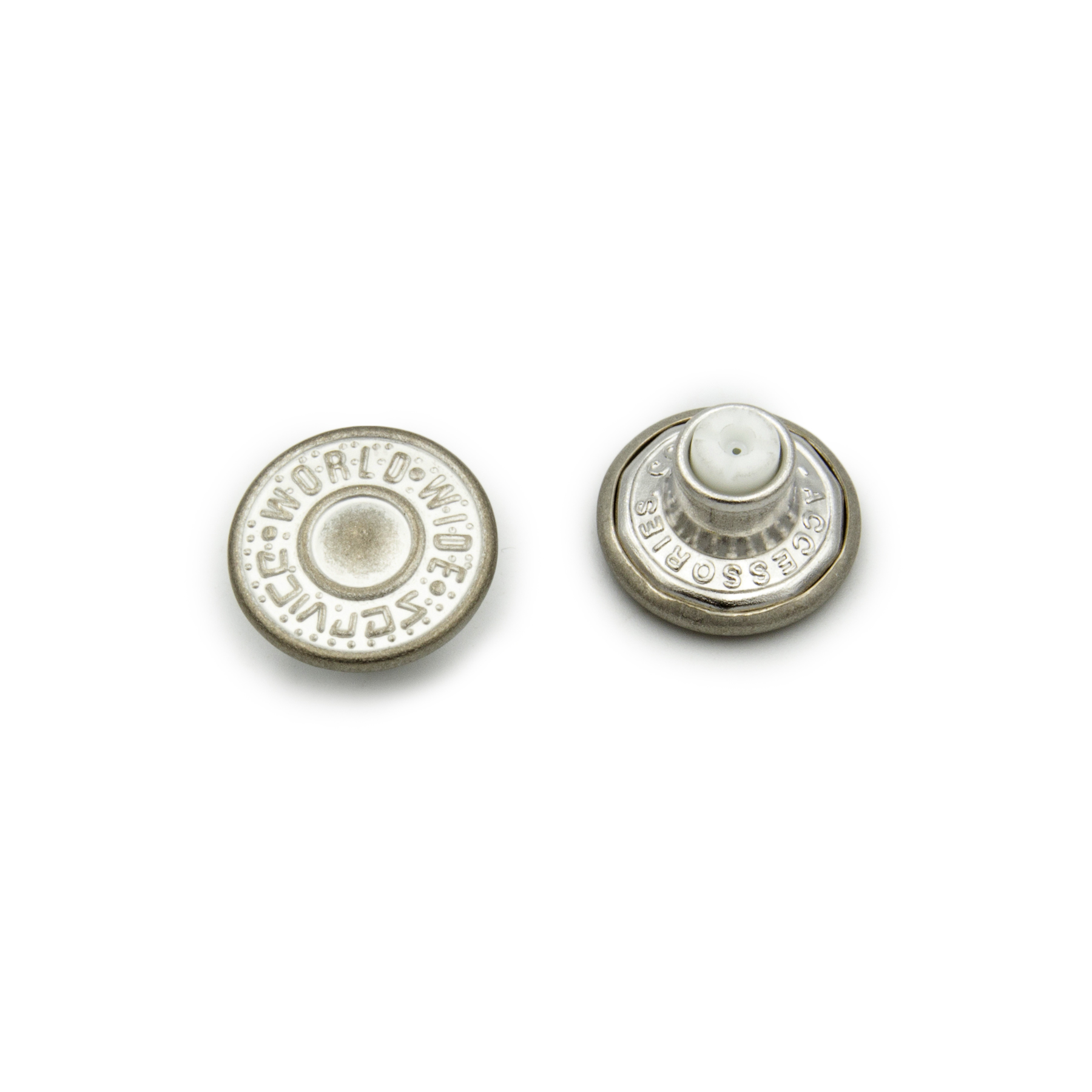 Fix Shank, Jeans Button, Brass material, 14mm, With Logo, Tin Oxide color.
