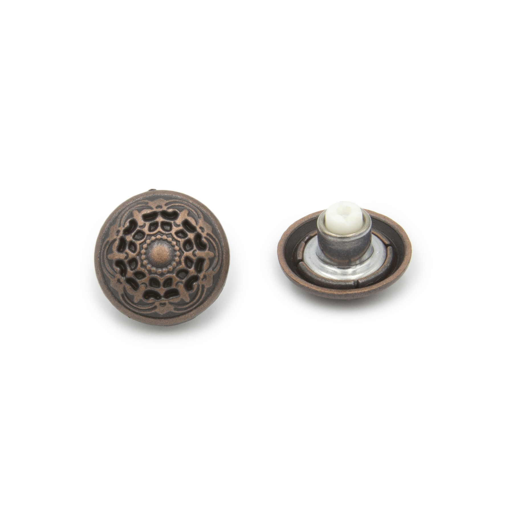 Fix Shank, Jeans Button, Alloy material, 17mm, With Design, Anti Copper color.
