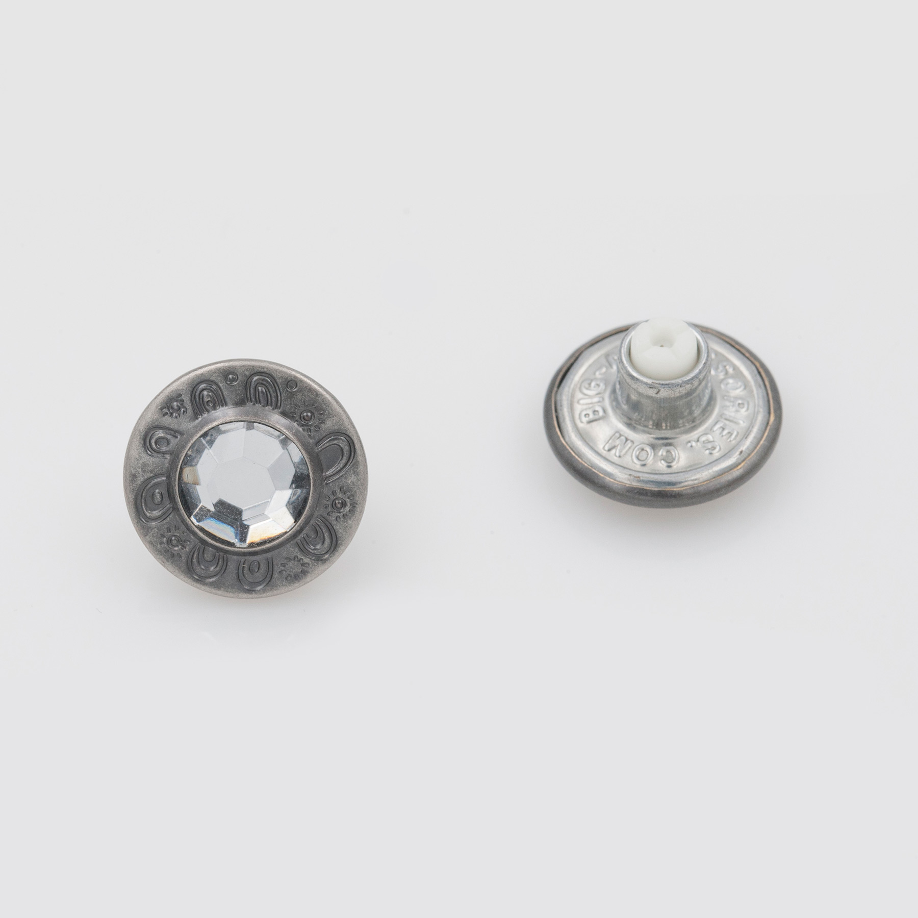 Fix Shank, Jeans Button, Brass material, 17mm, With Rhinestone, Anti Nickel color.
