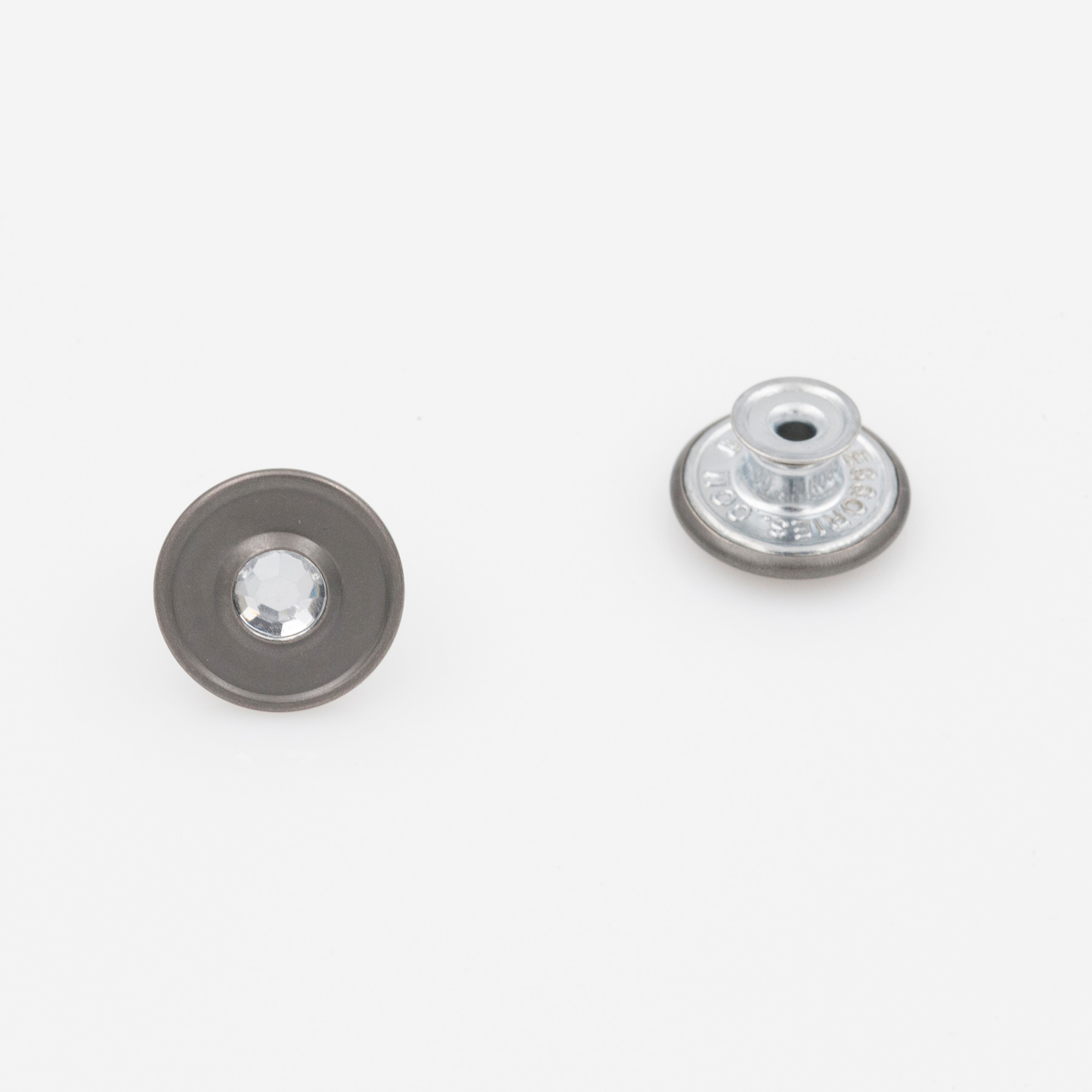 Movable Shank, Jeans Button, Brass material, 17mm, With Rhinestone, Matt Black Nickel color.