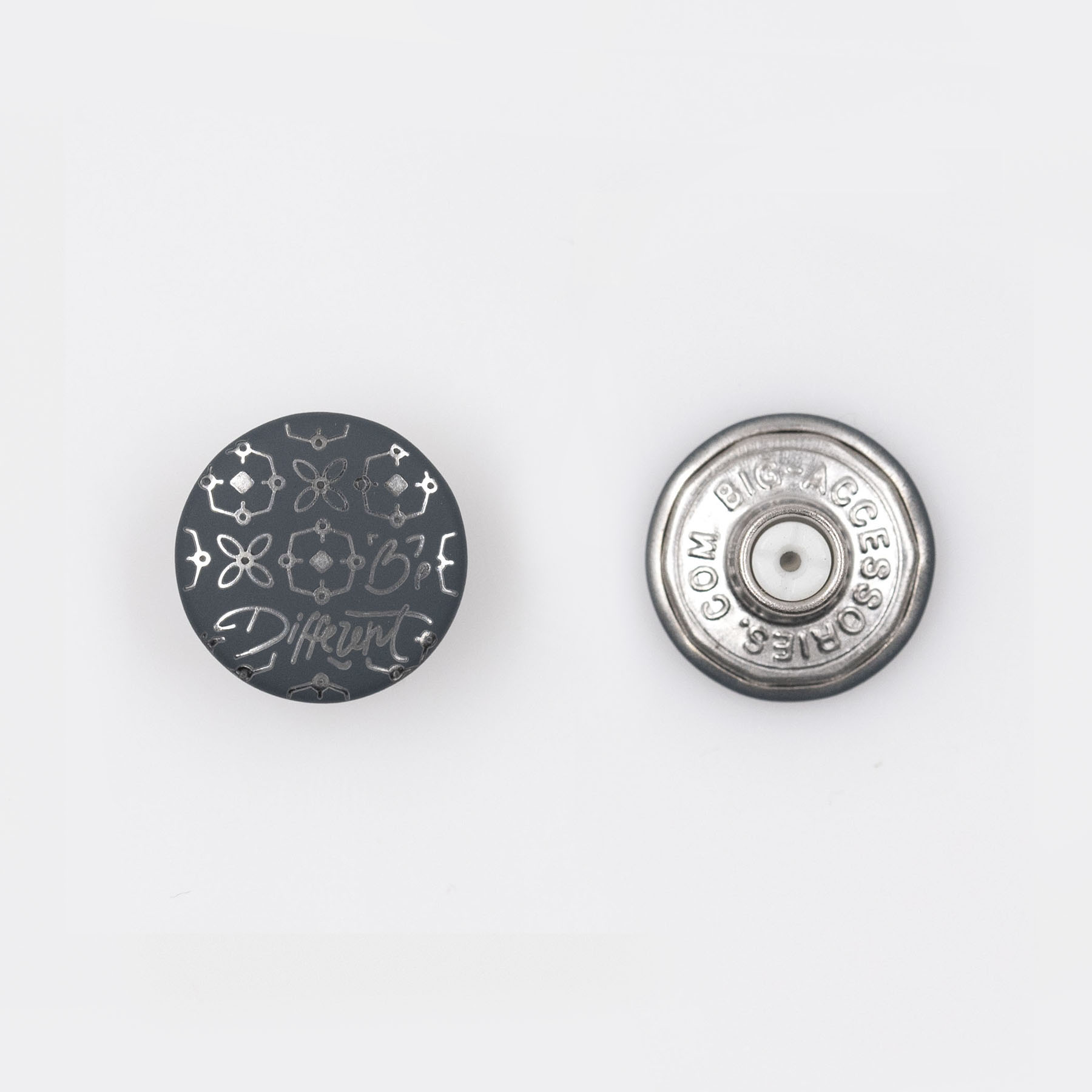Fix Shank, Jeans Button, Brass material, 17mm, Plain, Nickel with Rubber finish laser color.