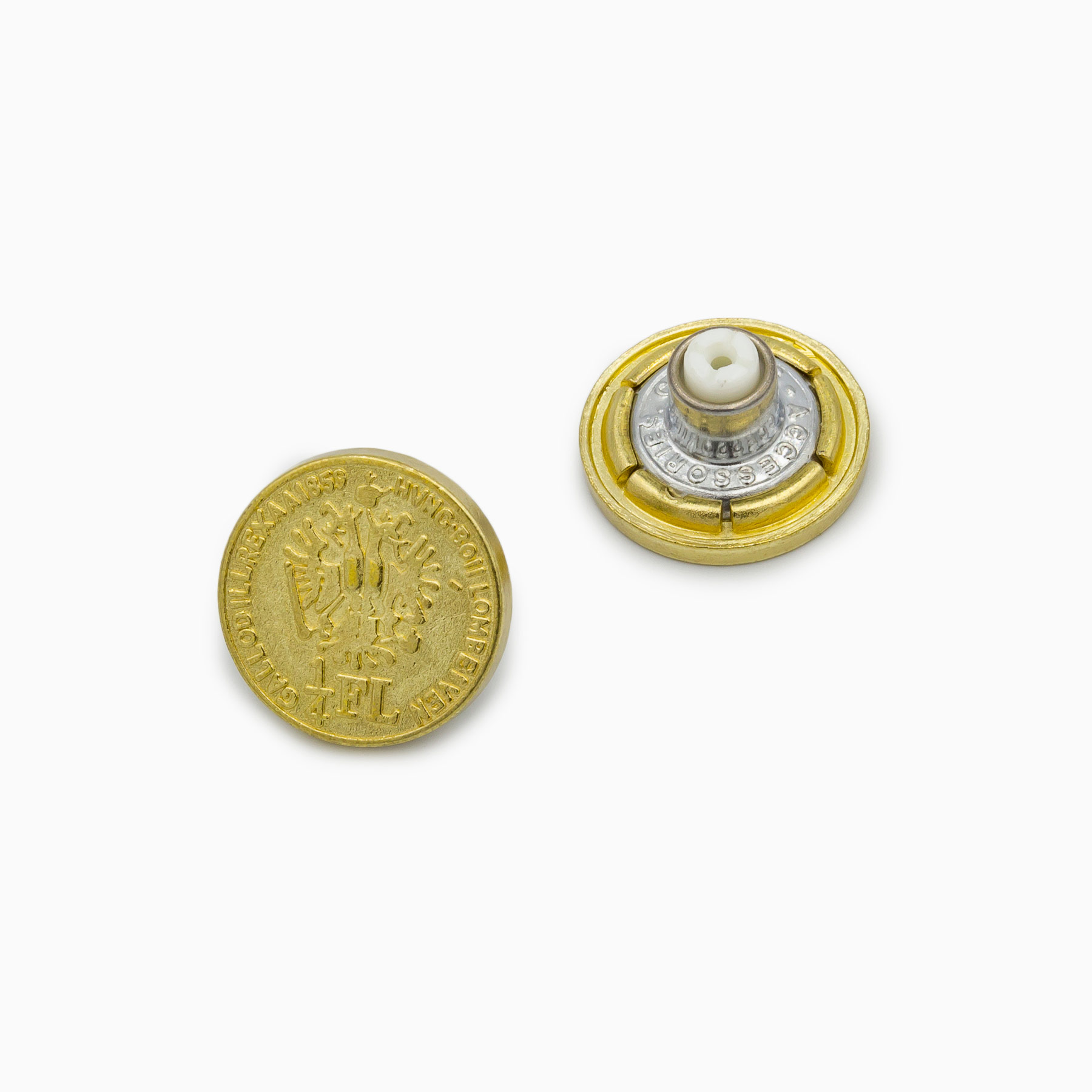 Fix Shank, Jeans Button, Alloy material, 18mm, With Design, Brass color.