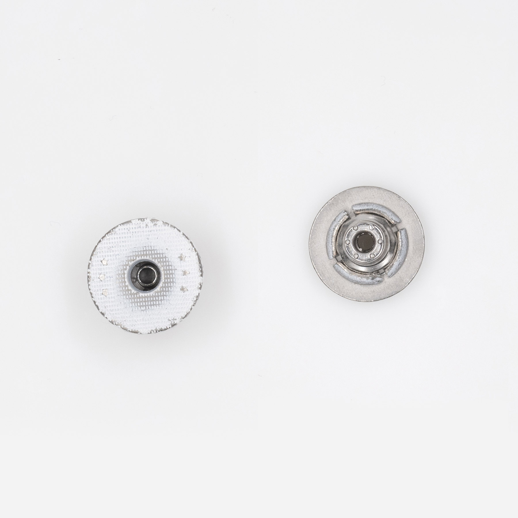 Fix Shank, Jeans Button, Alloy material, 18mm, With Design, Matt Enamel White in distress color.