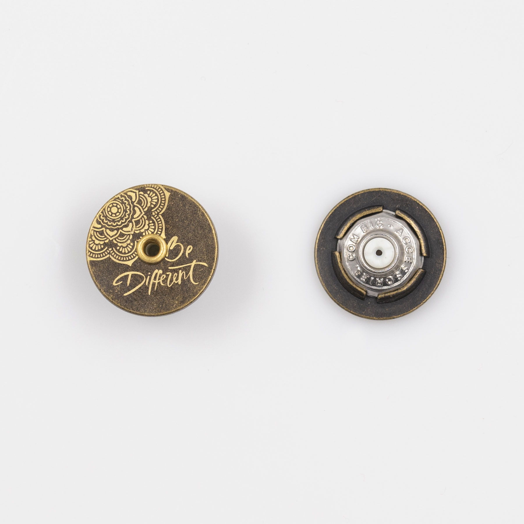 Fix Shank, Jeans Button, Alloy material, 20mm, With Logo, Anti Brass with yellow pattern color.