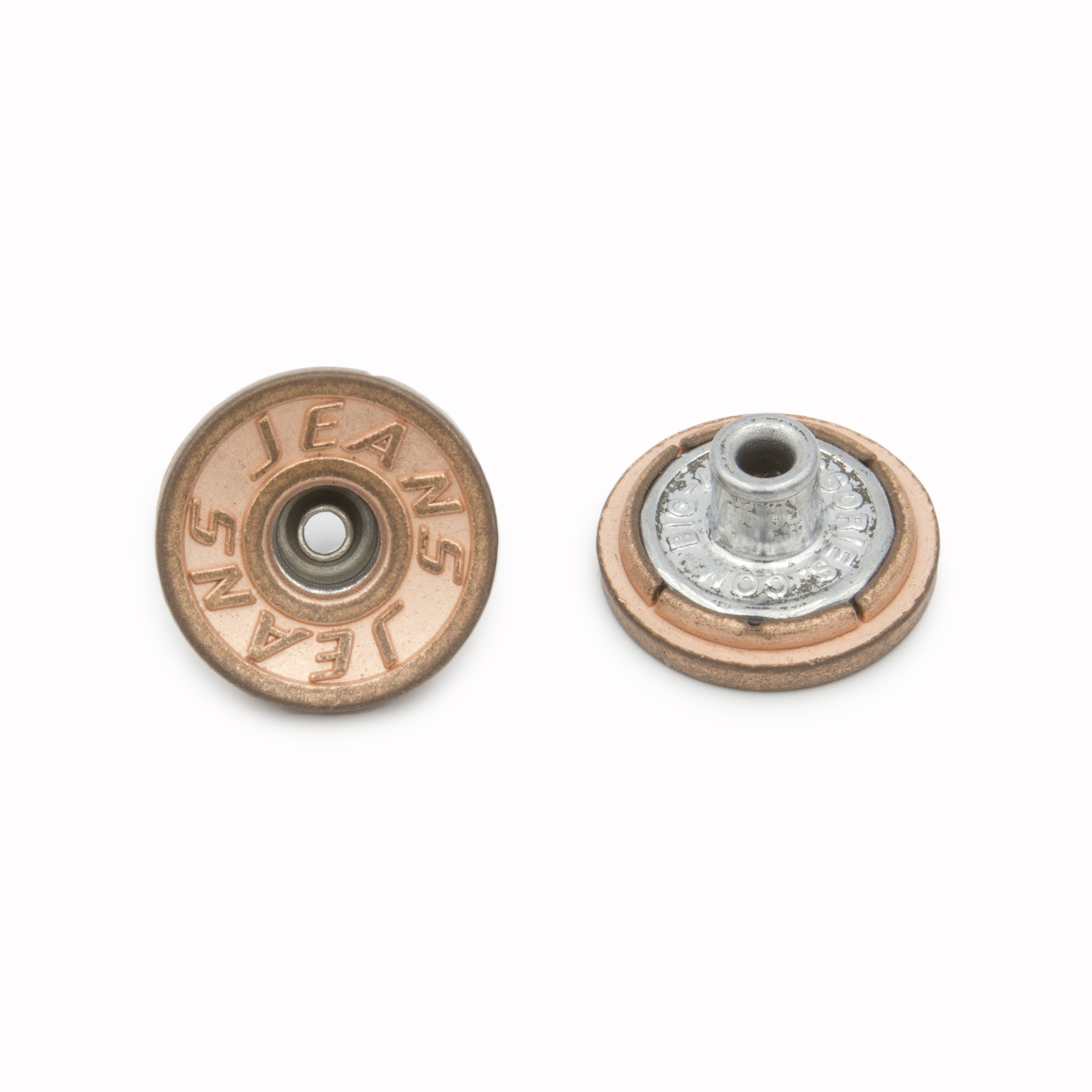 Fix Shank, Jeans Button, Alloy material, 20mm, With Logo, Copper Oxide color.