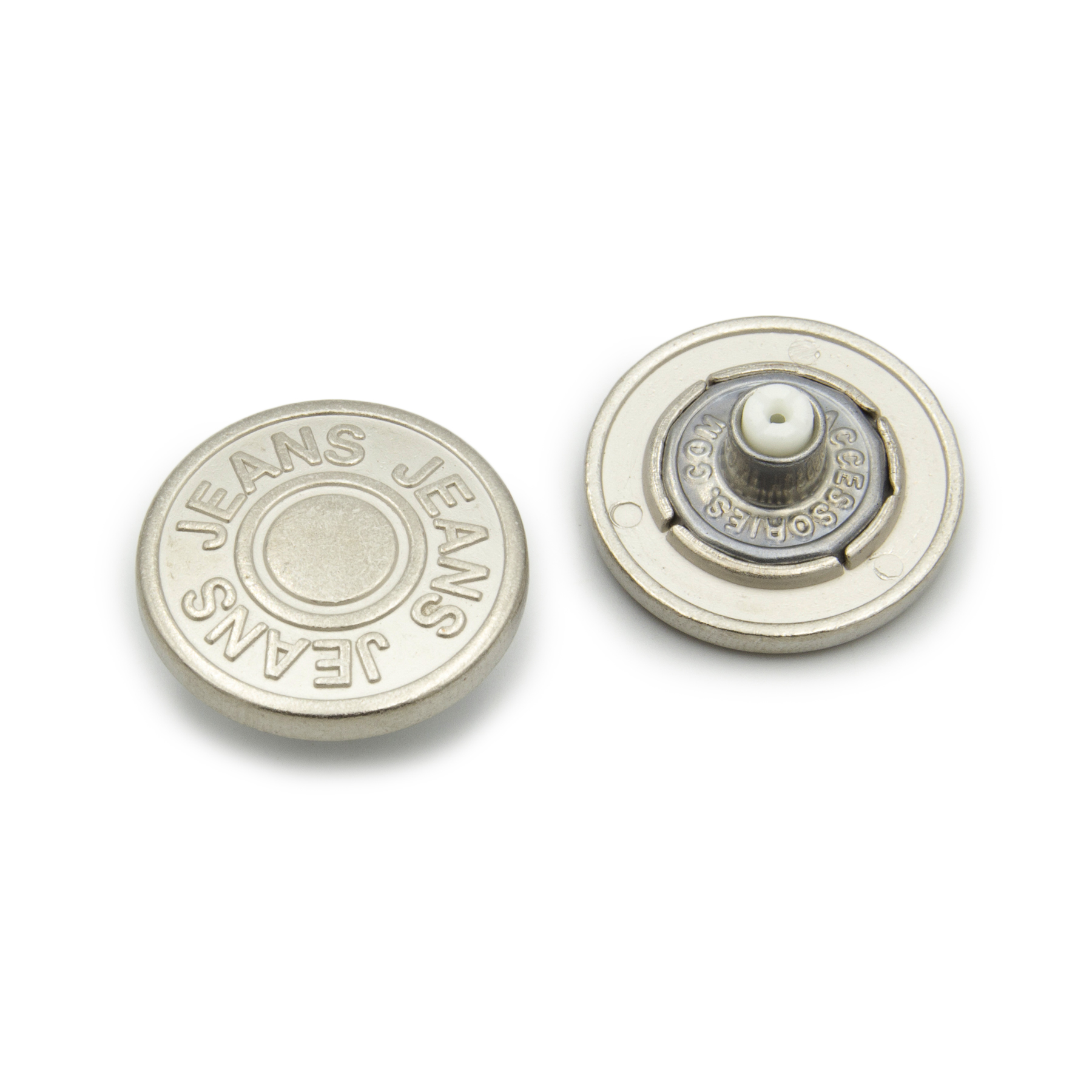 Fix Shank, Jeans Button, Alloy material, 25mm, With Logo, Dull Nickel color.