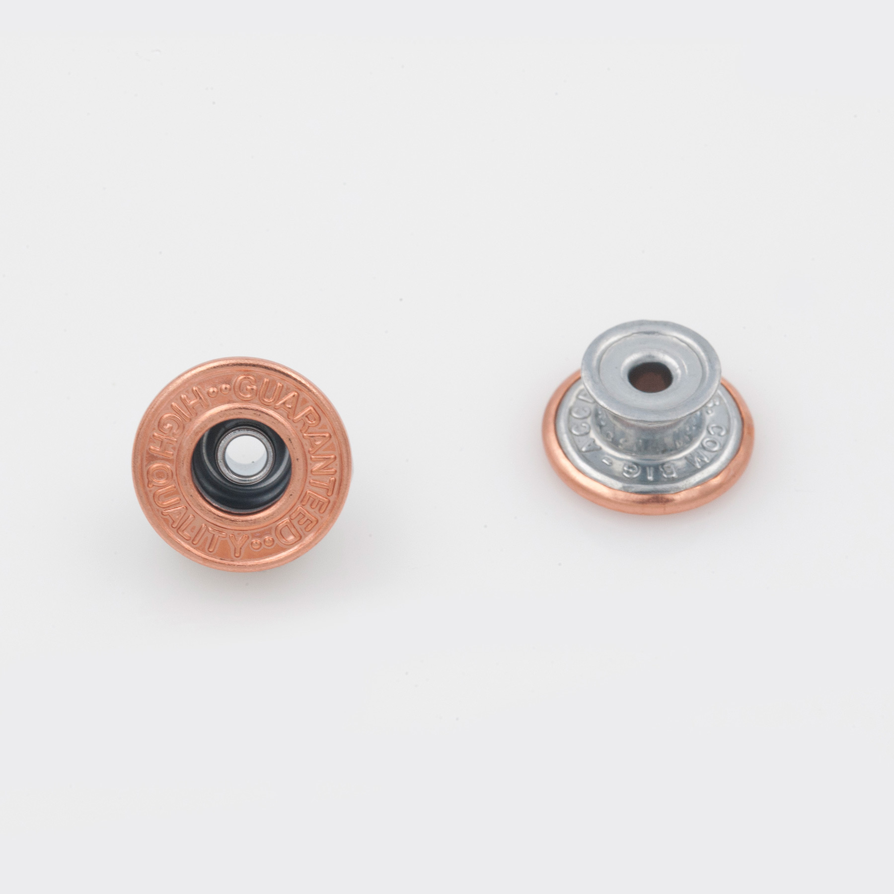 Movable Shank, Jeans Button, Brass material, 14mm, With Hole, Copper color.