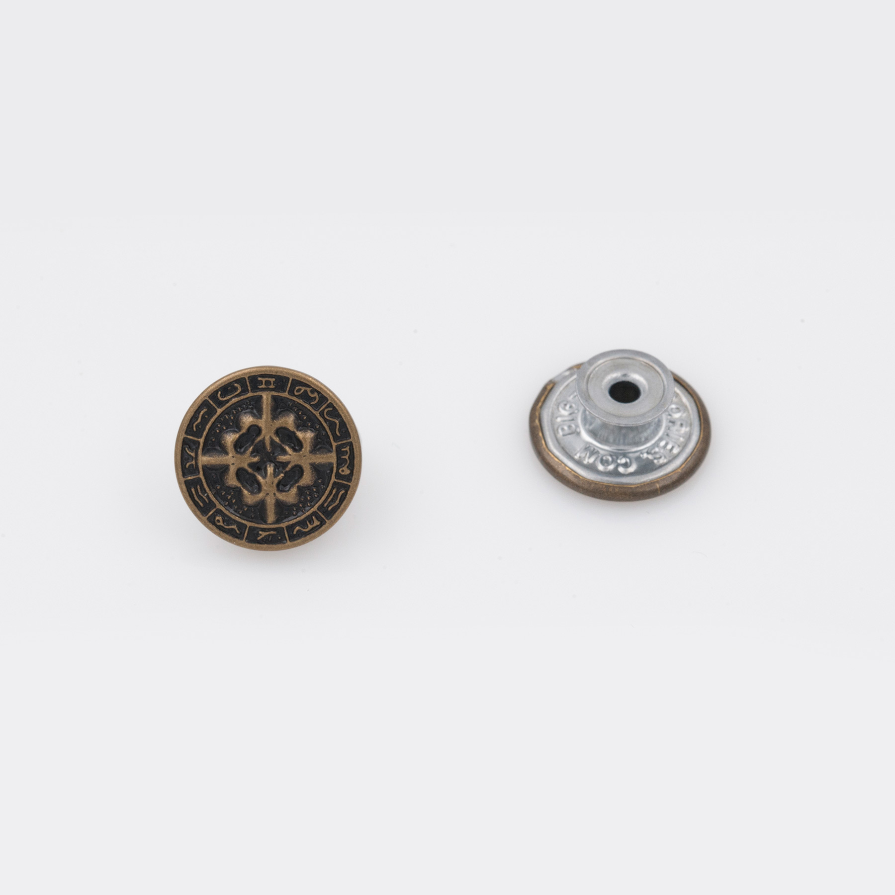 Movable Shank, Jeans Button, Brass material, 17mm, With Design, Anti Brass color.