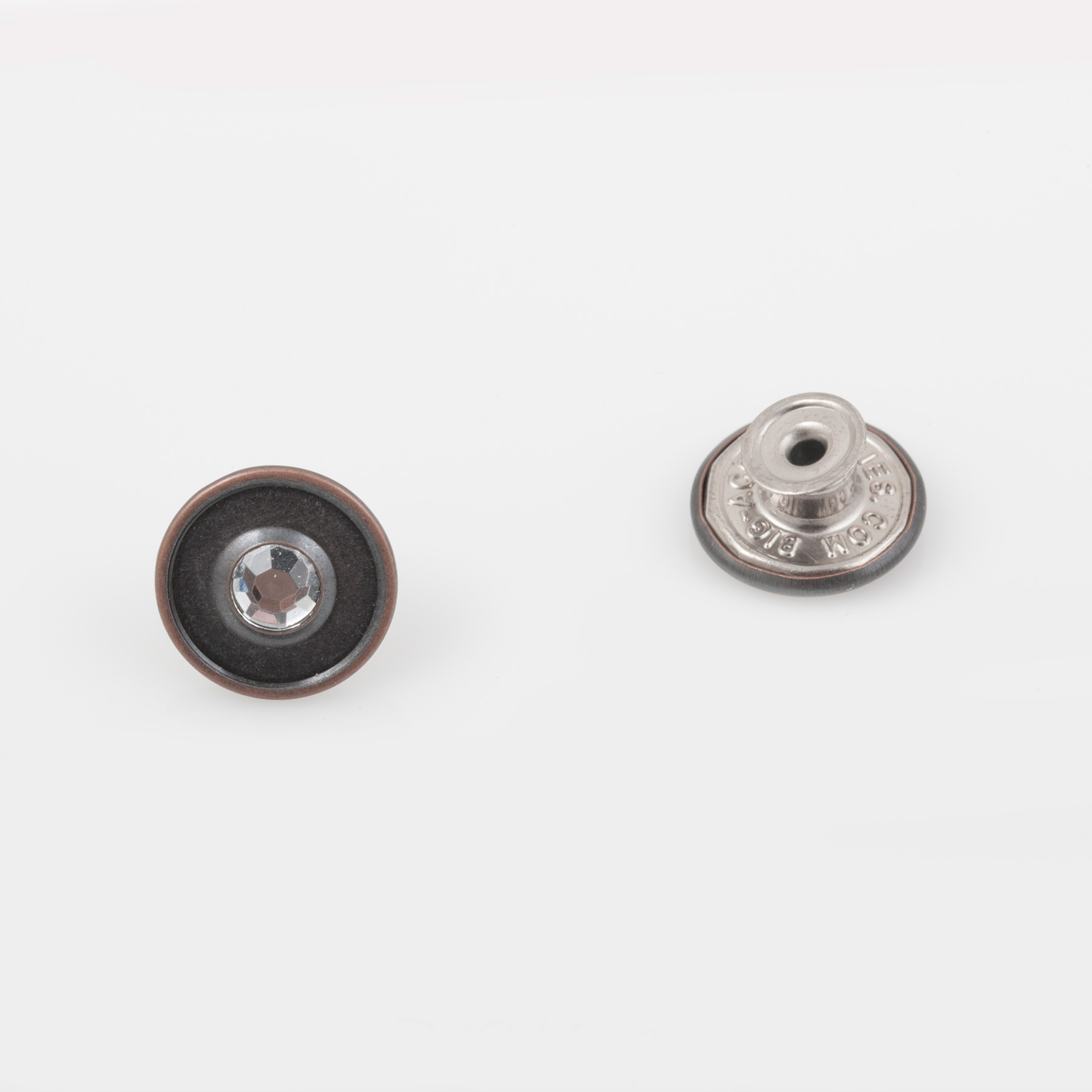 Movable Shank, Jeans Button, Brass material, 17mm, With Rhinestone, Anti Copper color.