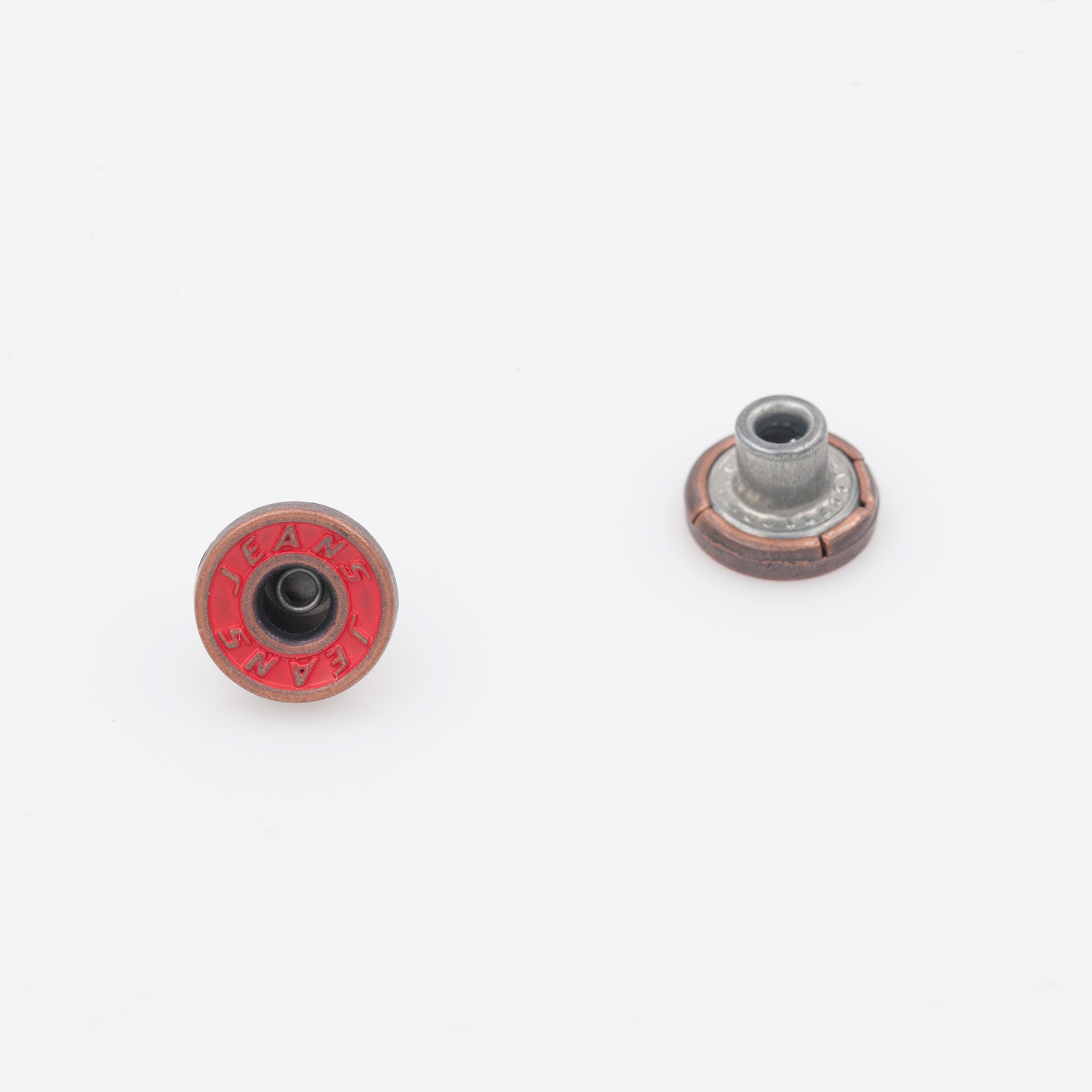 Fix Shank, Jeans Button, Alloy material, 14mm, With Hole, Anti Copper Red color.