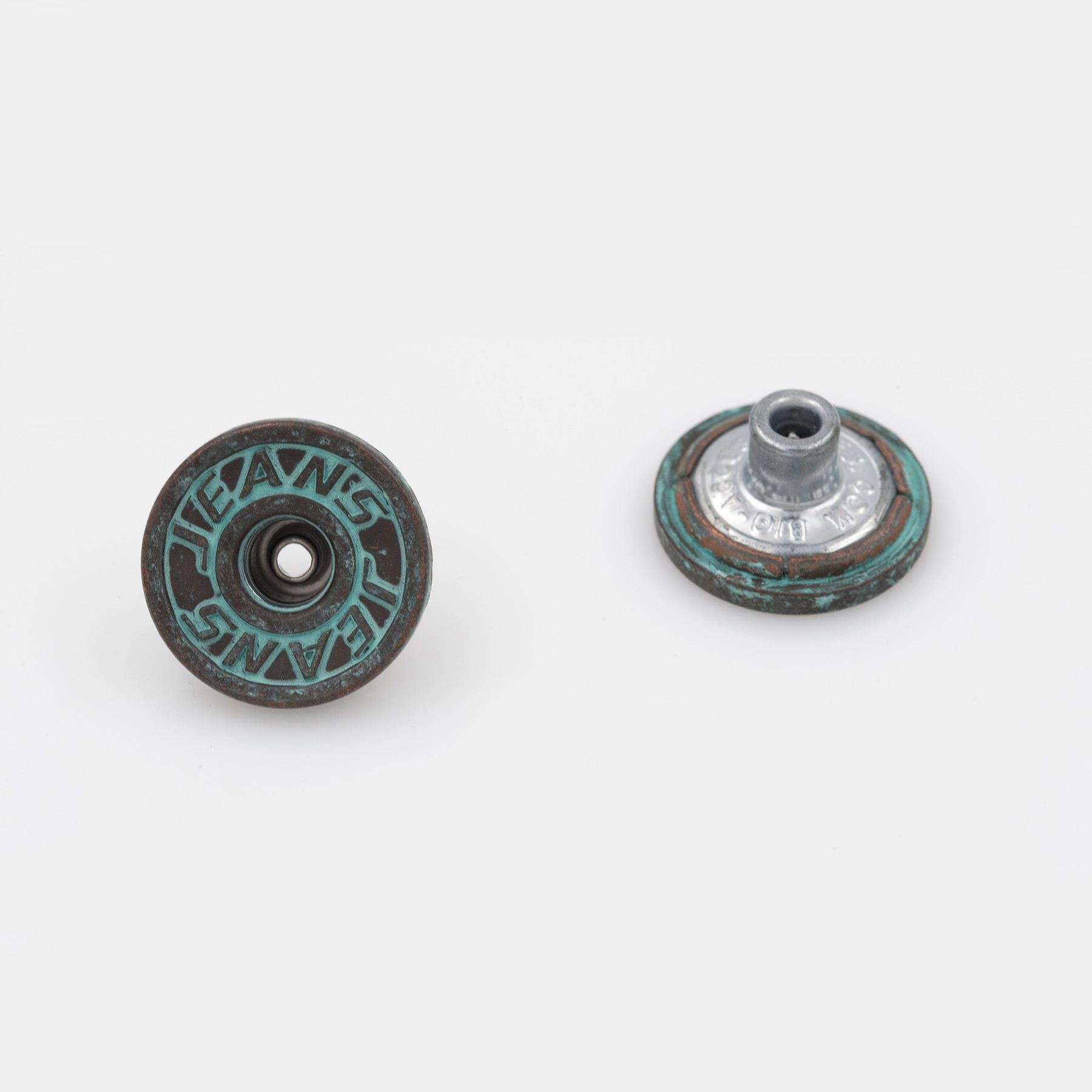 Fix Shank, Jeans Button, Alloy material, 20mm, With Logo, Printed Blue color.
