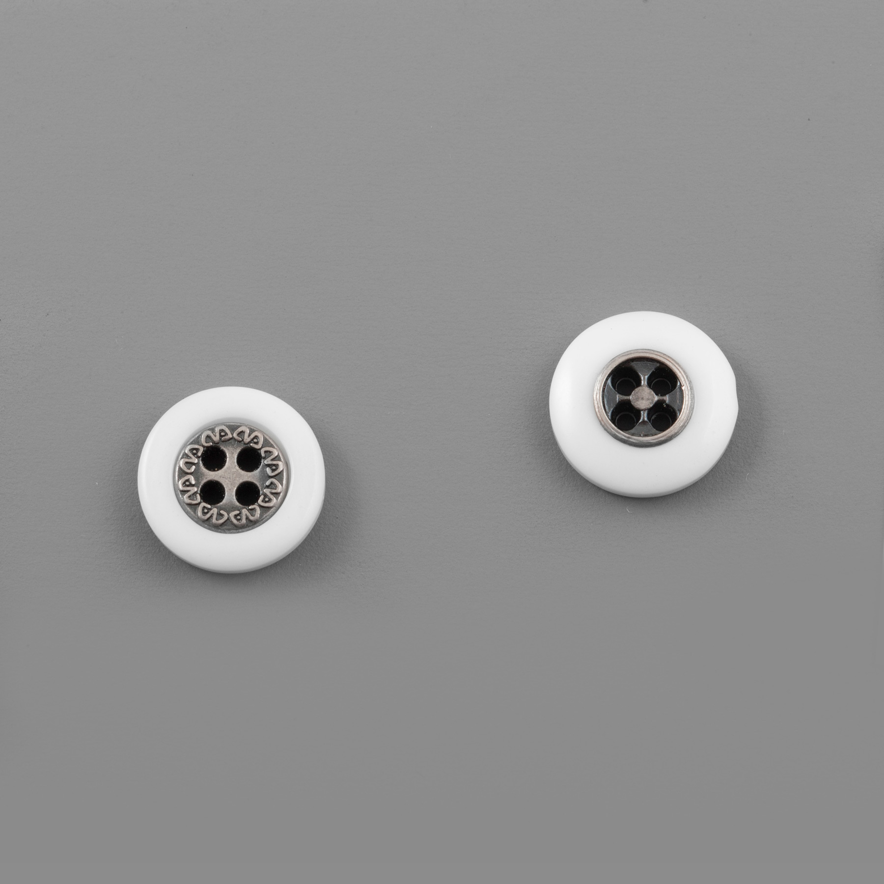 Sew-On Hole-Type Button, Plastic material, With Design, 12.5mm, White-Anti Nickel color.