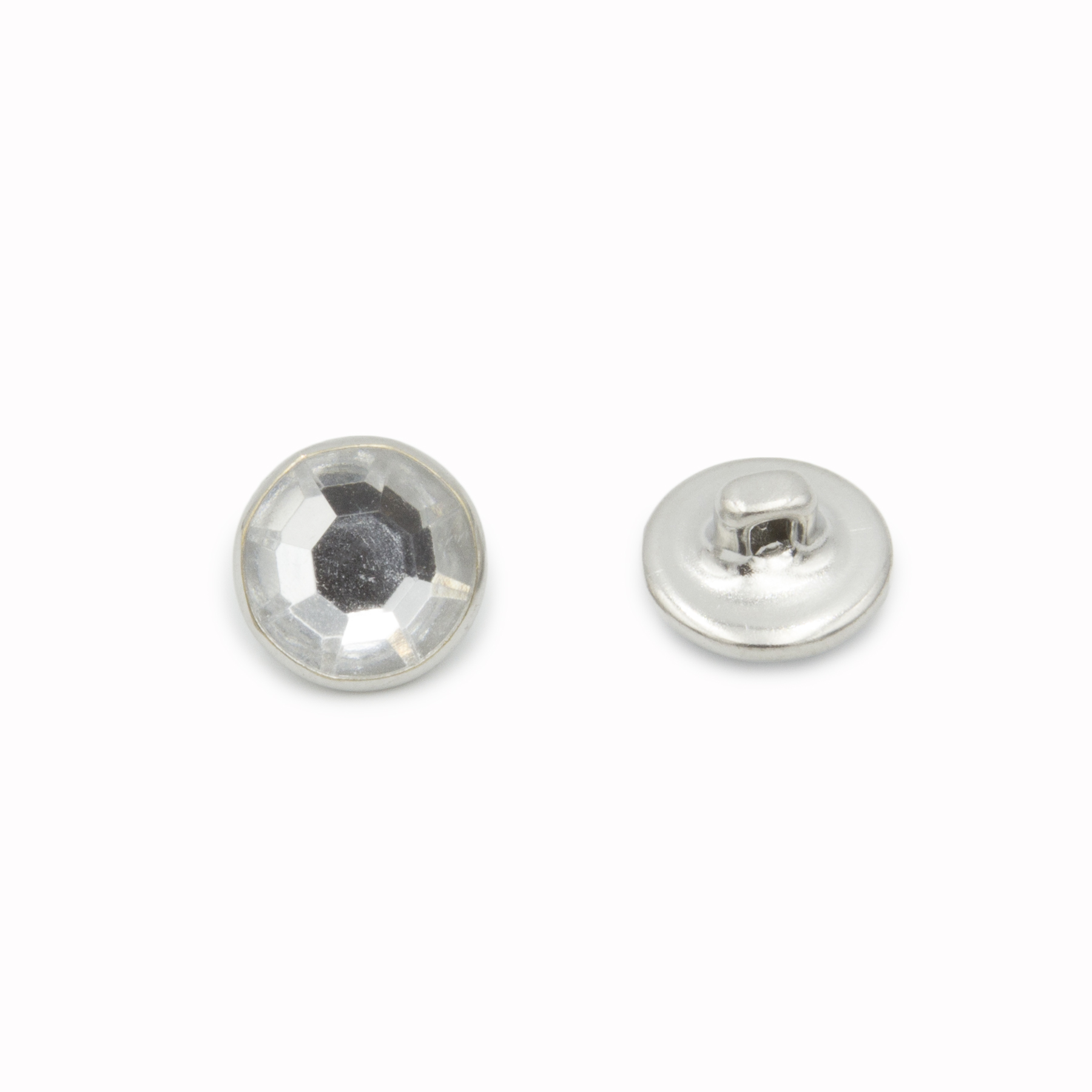 Sew-On Shank Button, Brass material, With Rhinestone, 12.6mm, Nickel color.