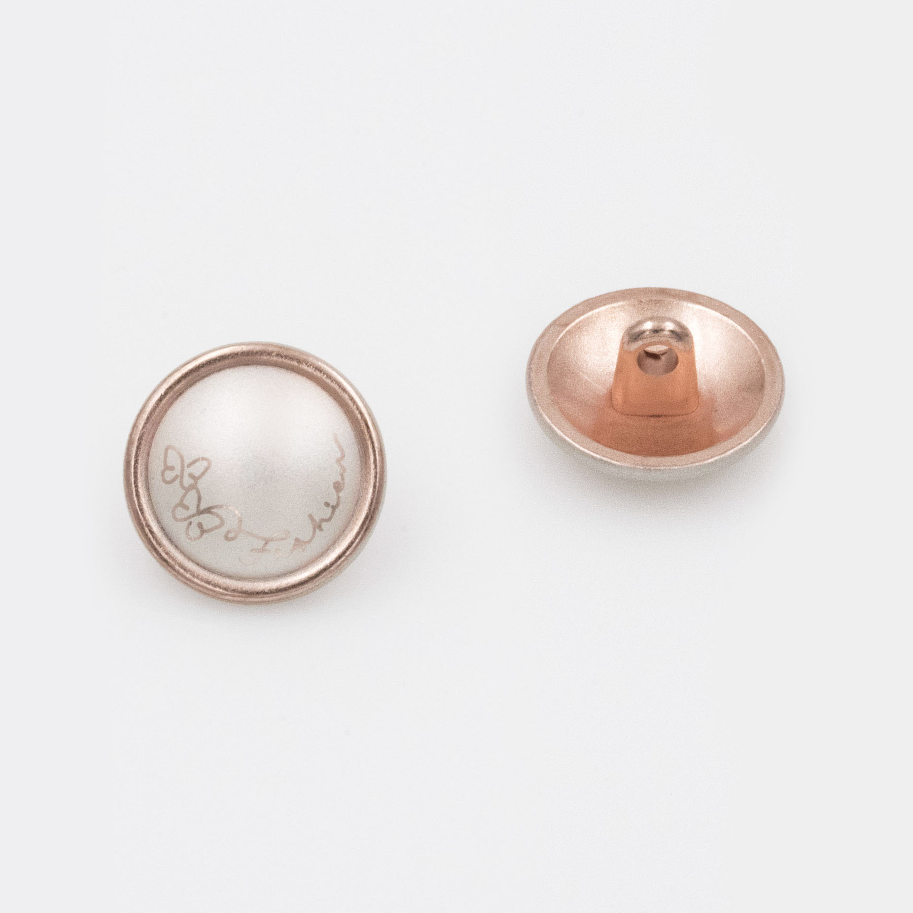 Sew-On Shank Button, Alloy material, Floral, 15mm, Copper wih powder roze color.