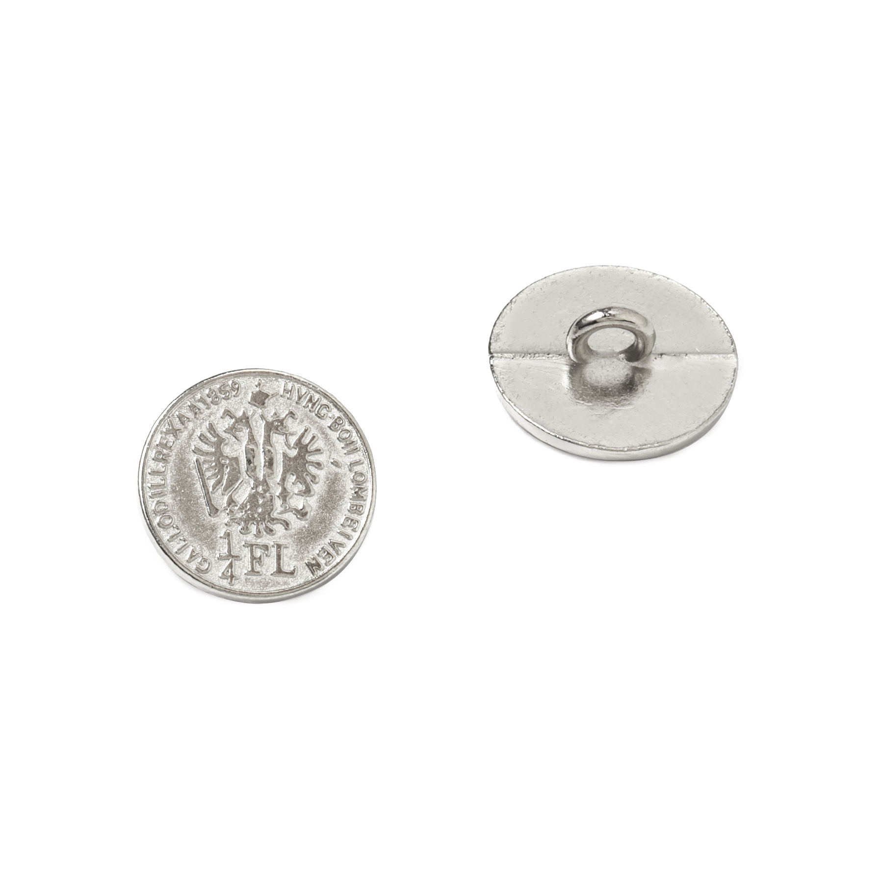 Sew-On Shank Button, Alloy material, With Design, 15mm, Nickel color.