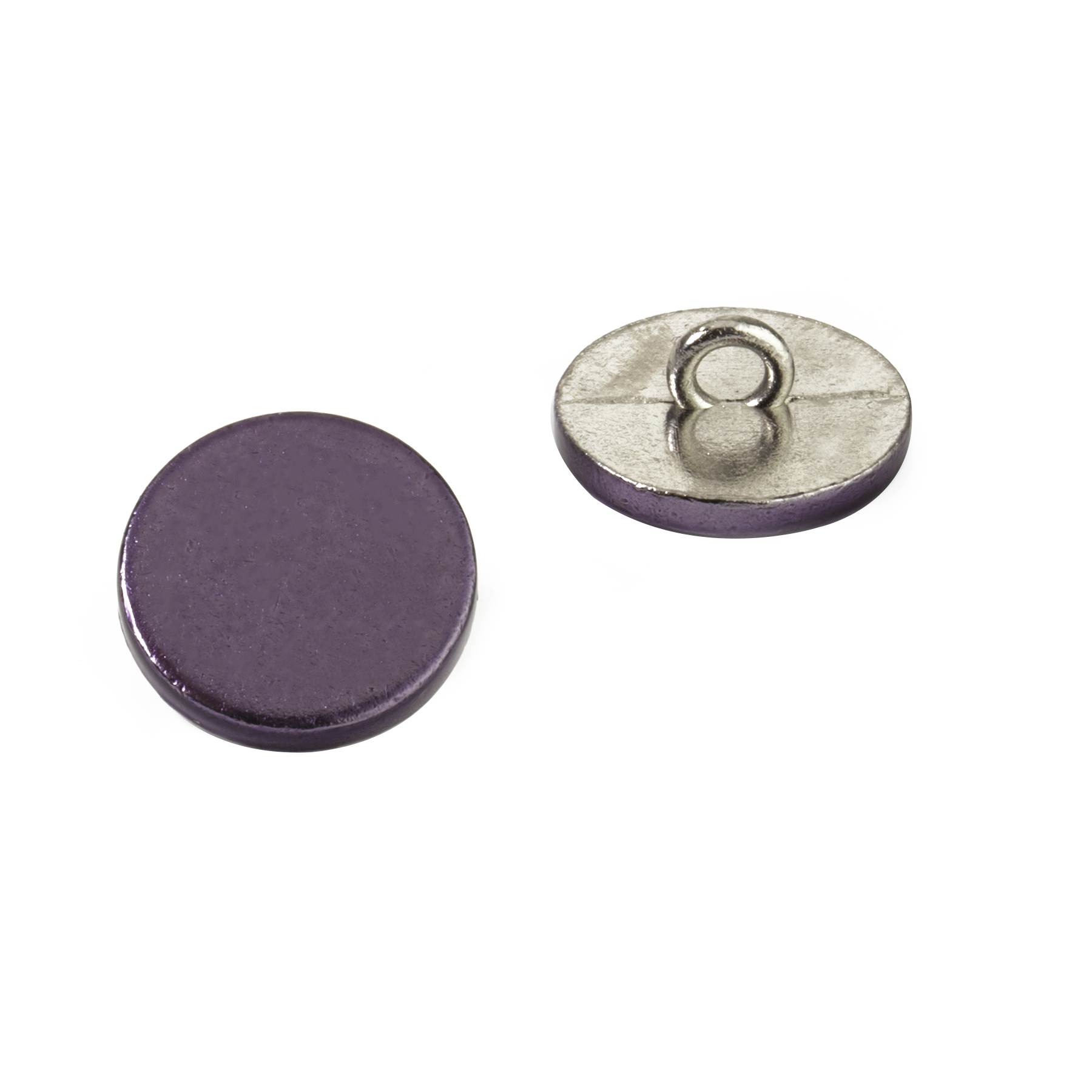 Sew-On Shank Button, Alloy material, Plain, 15mm, Purple color.