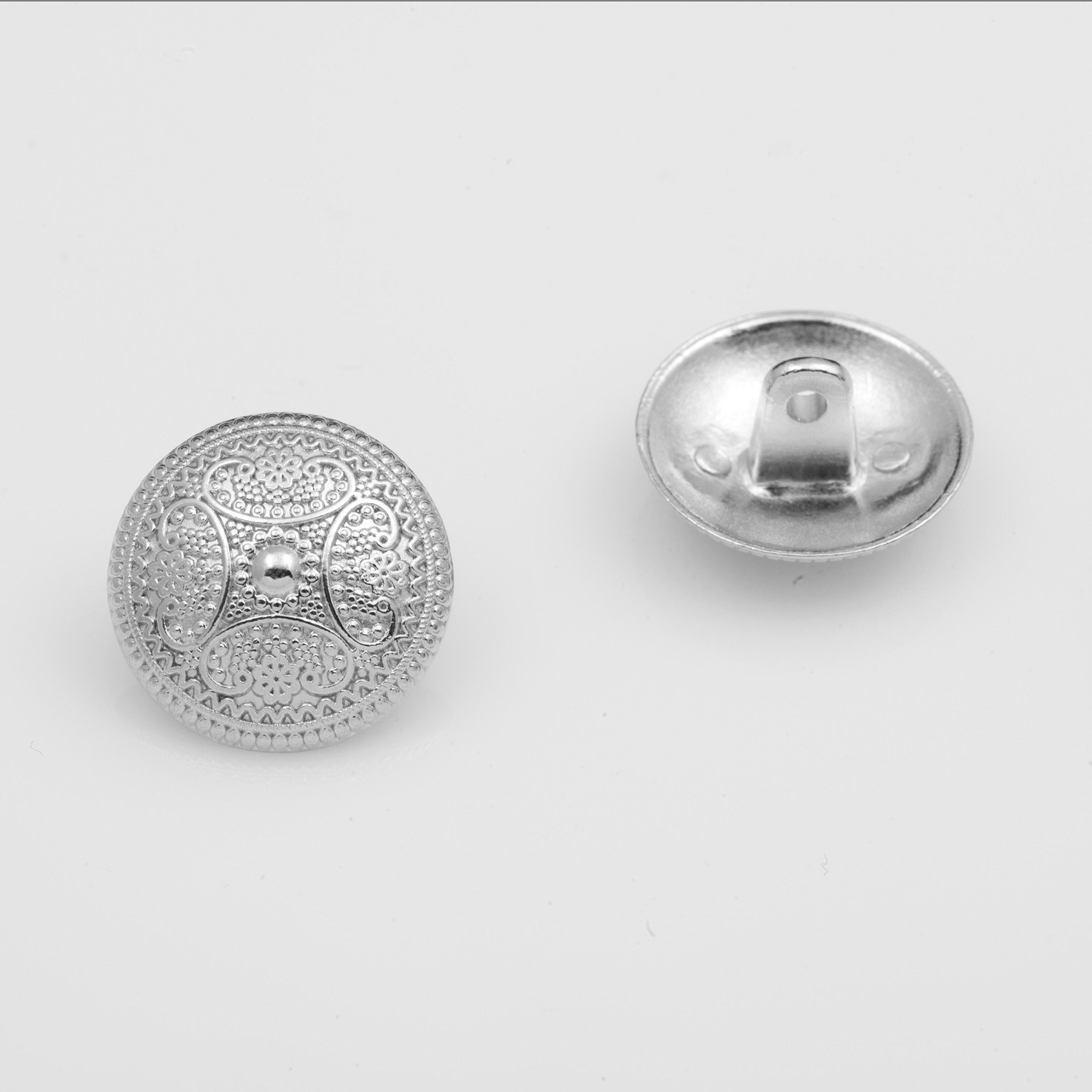 Sew-On Shank Button, Alloy material, With Design, 19mm, Nickel color.