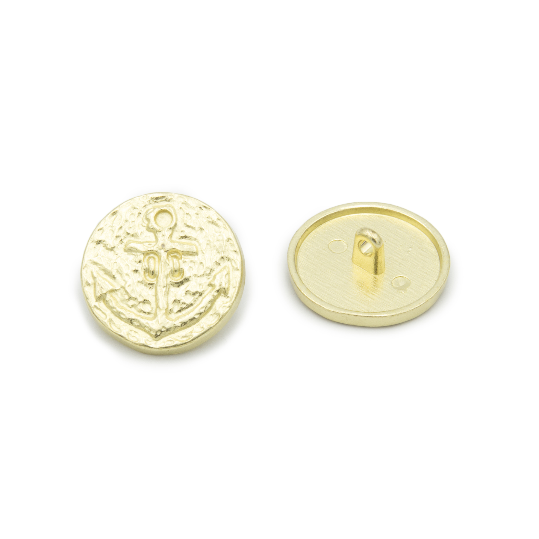 Sew-On Shank Button, Alloy material, With Design, 20mm, Brass color.